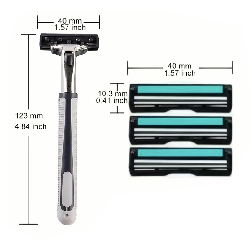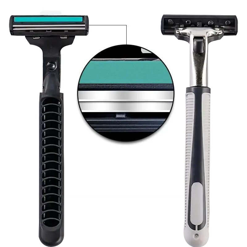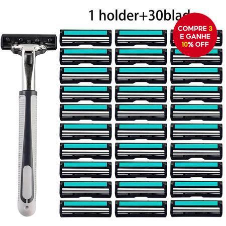 Barbeador Manual Masculino Clássico de 2 Camadas, 1 Suporte de Lâmina, 30 Lâminas, Barbeador de Aço Inoxidável com