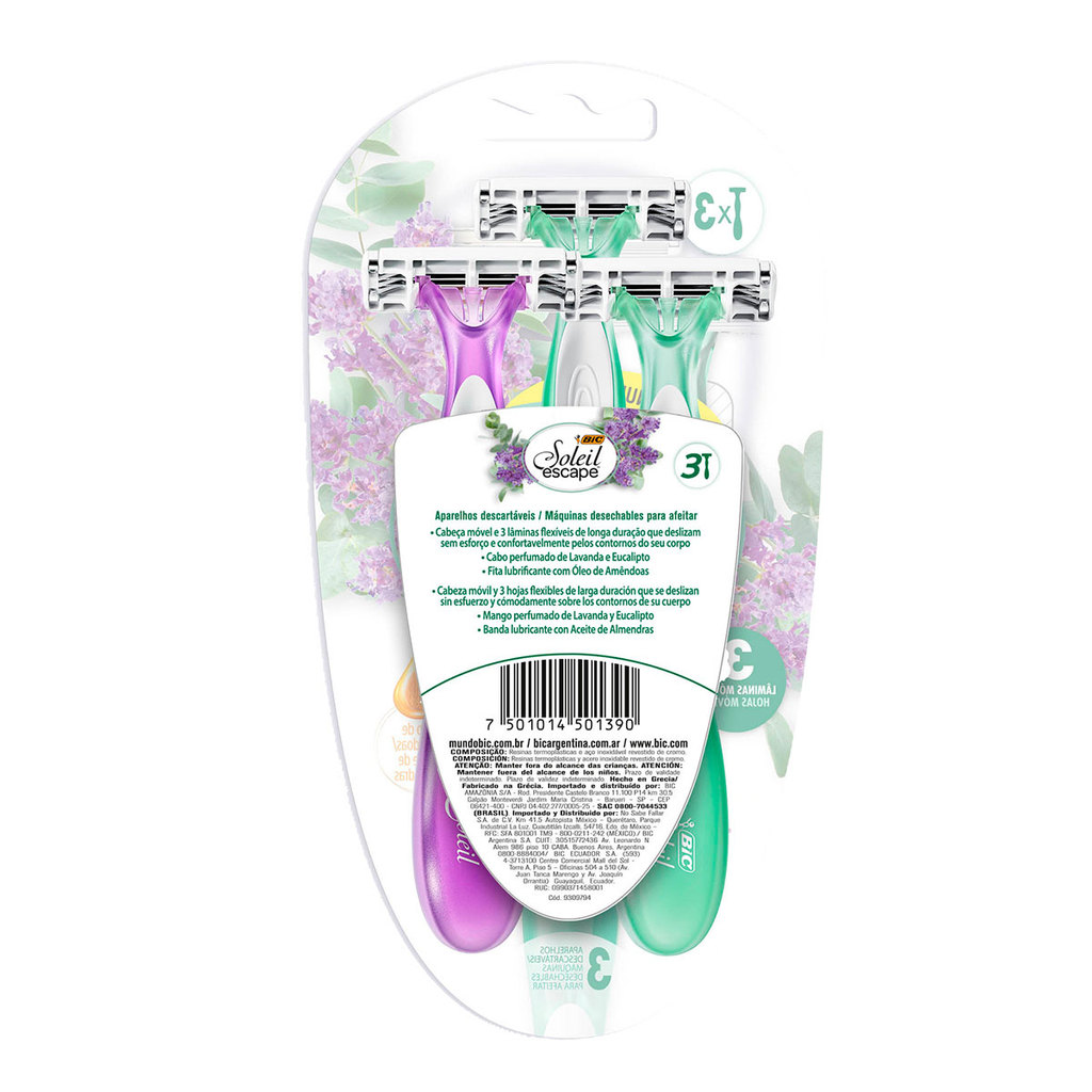 Barbeador descartável Soleil Escape Lavanda e Eucalipto 3 unidades Bic