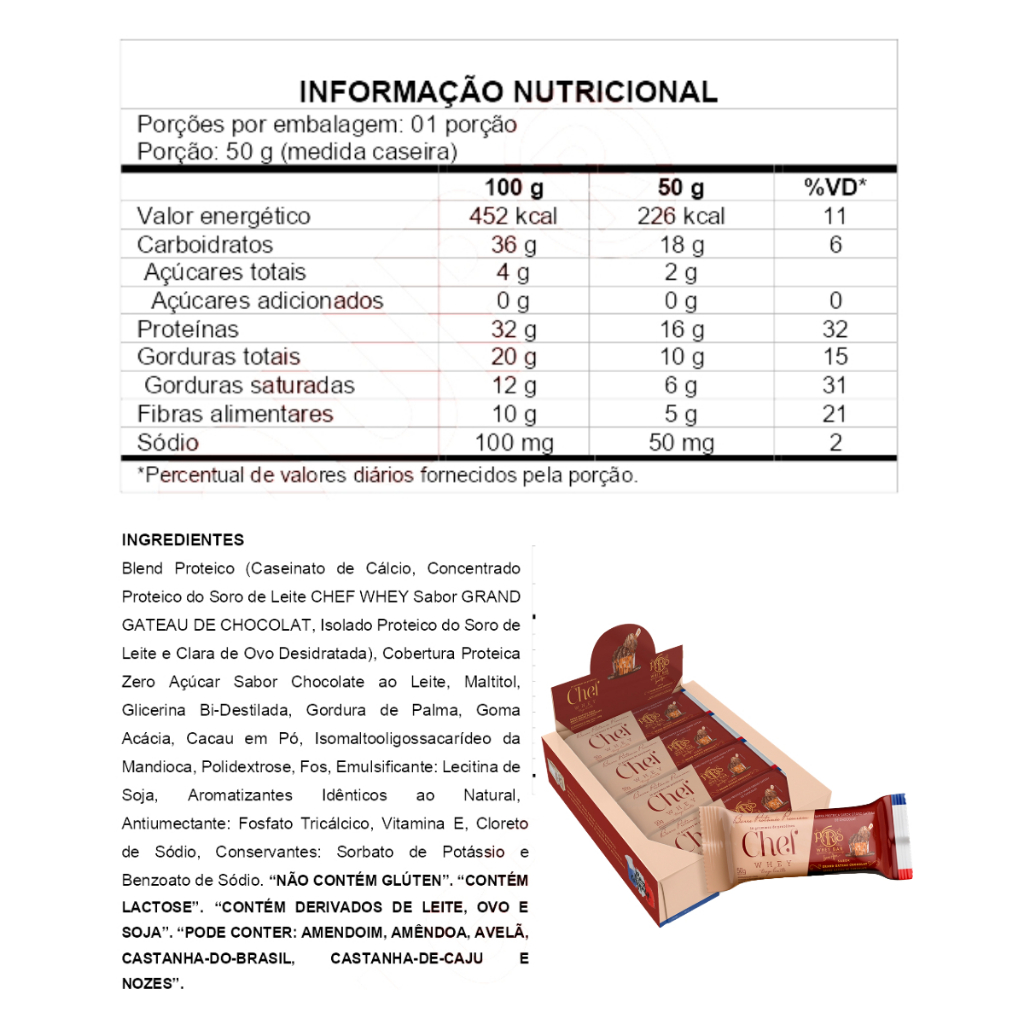 Barra de Proteína Premium Display C/ 12 Uni - Chef Whey