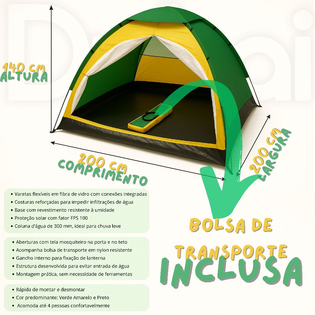 Barraca Camping 4 Pessoas Compacta Com Bag Tipo Iglu