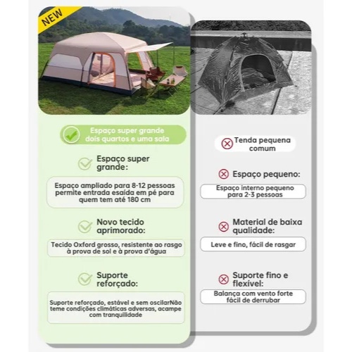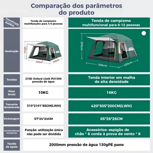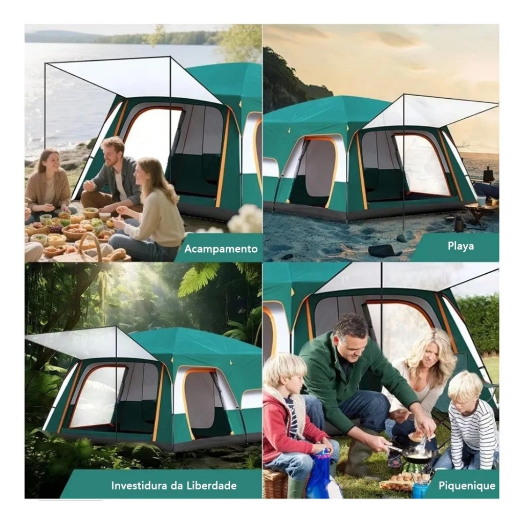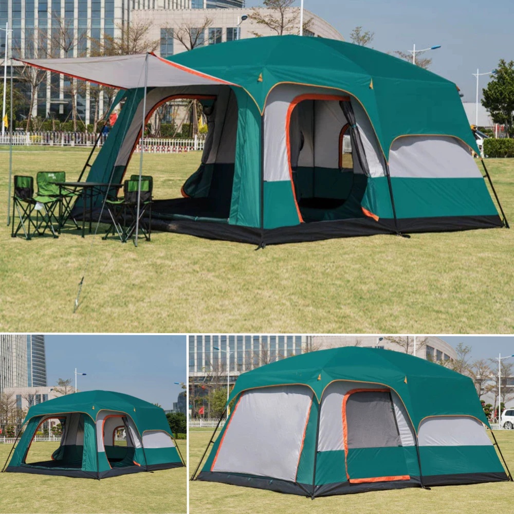 Barraca Camping Acampamento 12-16 Pessoas Grande Varanda 430x305x200cm Impermeavel Luxe Tenda Familiar