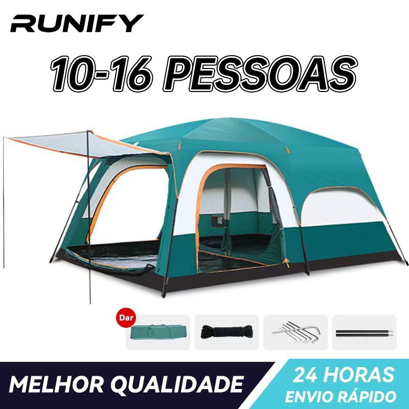 Barraca Camping Acampamento Luxe 10-16 Pessoas Tenda Familiar Grande Varanda 430x320x200cm