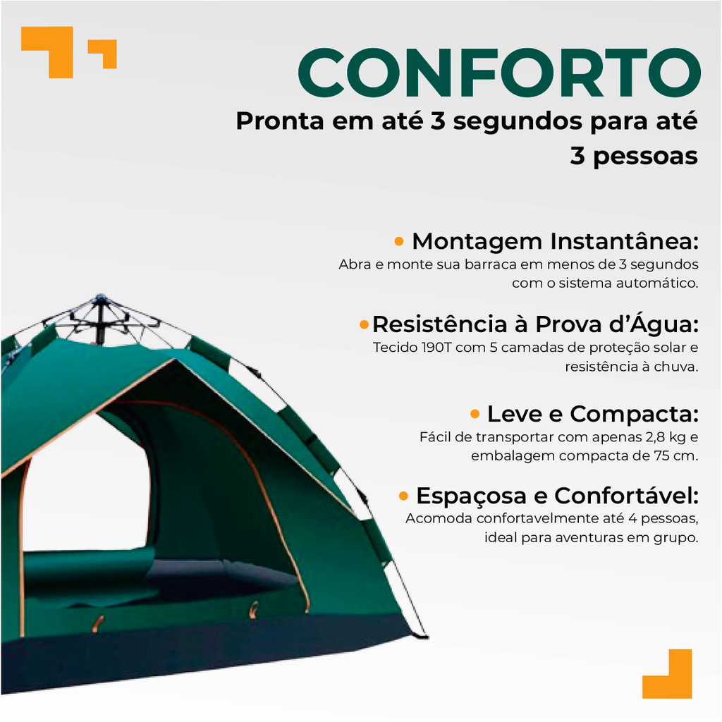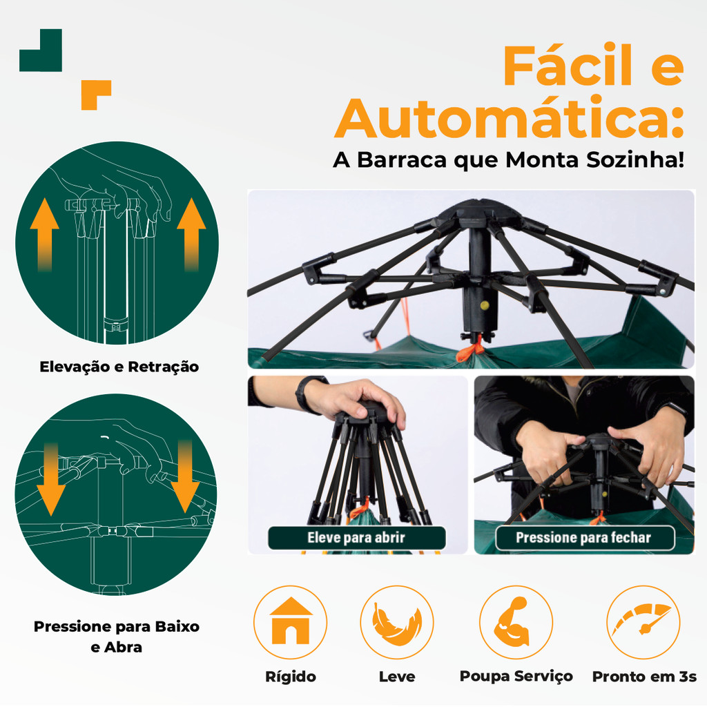 Barraca Camping Automática 2-3 Pessoas 2MX2,1MX1,35M Verde Escuro