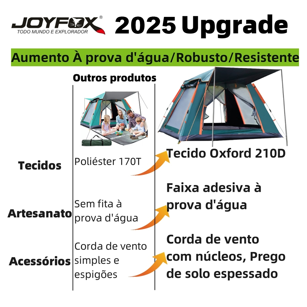 Barraca Camping Automatica 3-4 Pessoas Acampamento 215*215*145cm JOYFOX FORESTDOG
