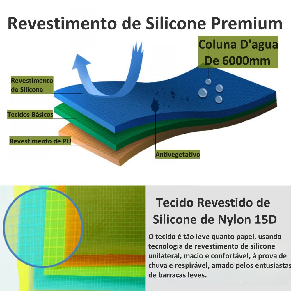 Barraca Camping Ultralight 2p Silicone 20d 6000mm Profissional à prova de chuva