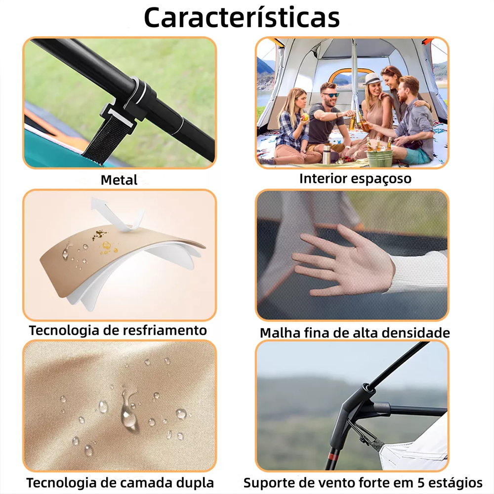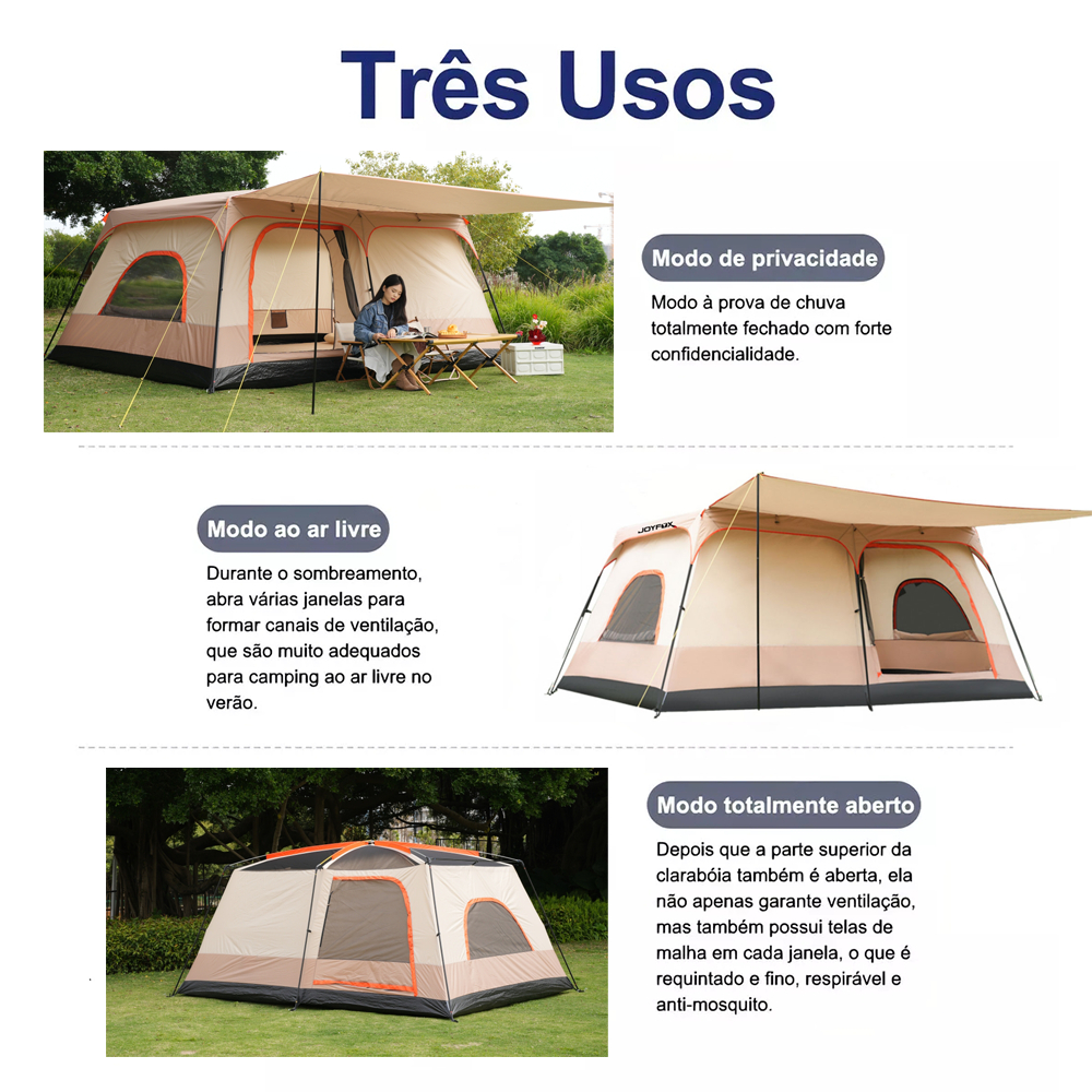Barraca De Camping Acampamento 4-8 Pessoas 330*210*175cm Impermeavel 2000mm Grande Varanda JOYFOX