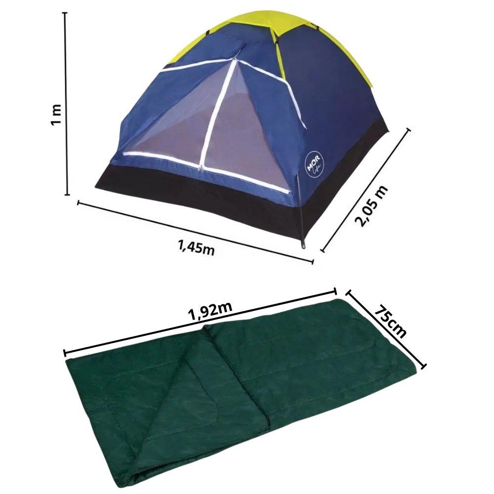 Barraca Iglu para Camping Azul 2 Pessoas com Saco de Dormir MOR