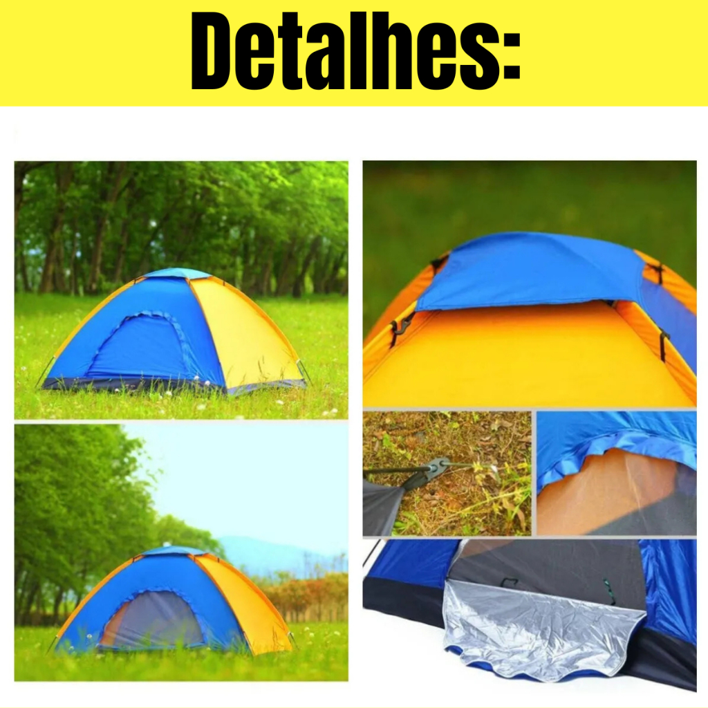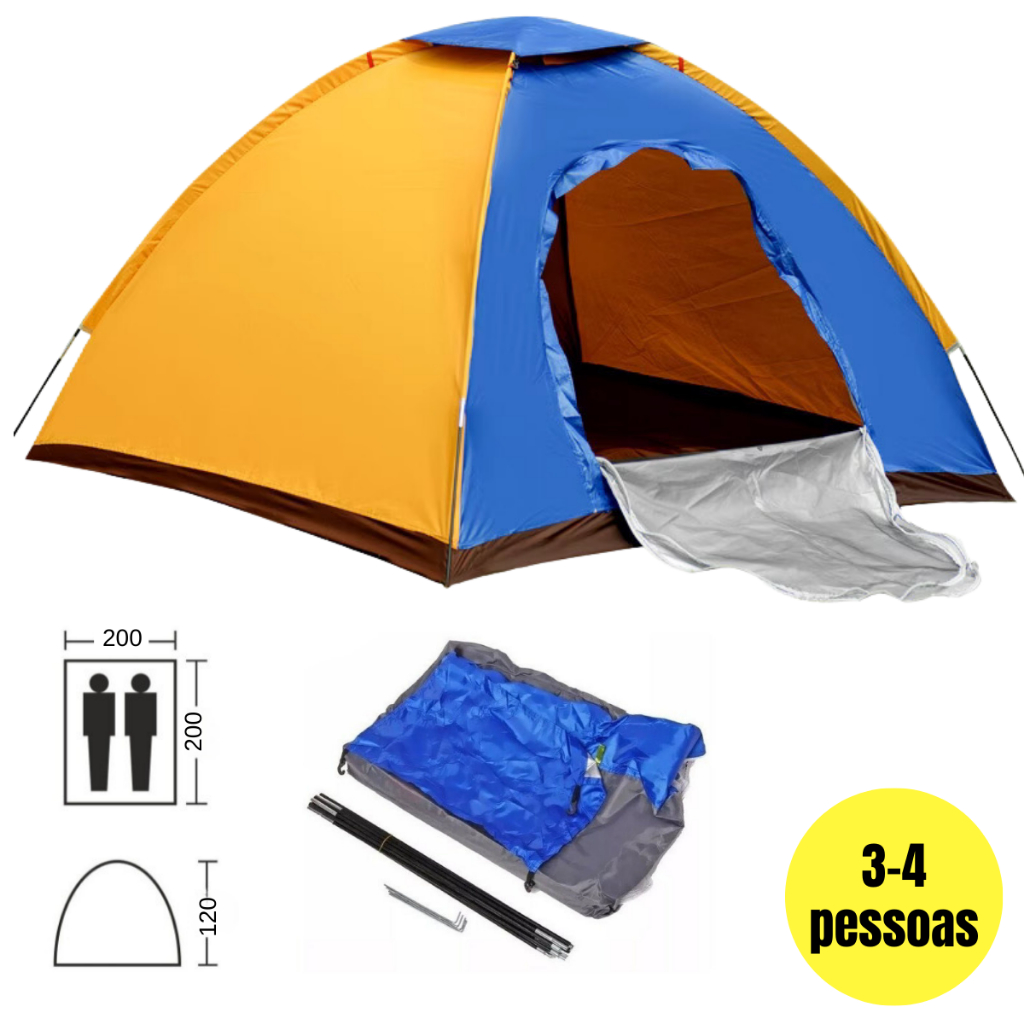 Barraca de Acampamento 2/3 e 3/4 Pessoas Montagem Fácil Barraca Camping Impermeável com Mosquiteiro