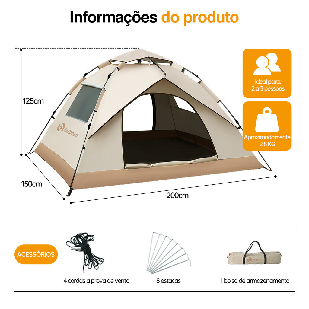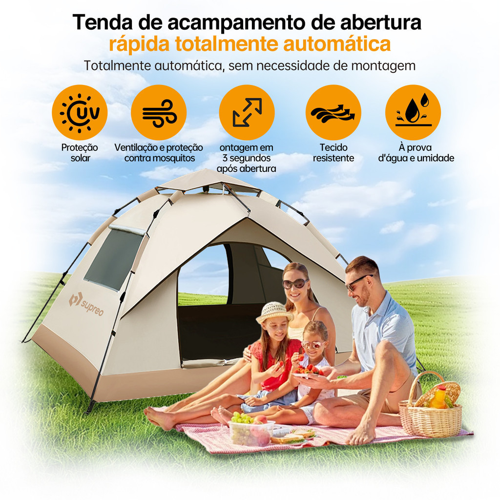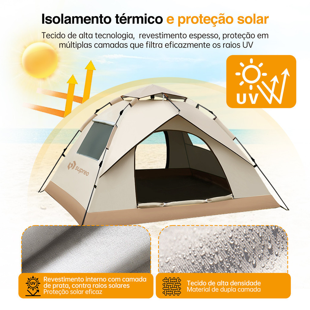 Barraca de Camping Automática Impermeável 2 a 3 Pessoas Dobrável Portátil com Proteção Solar para Praia