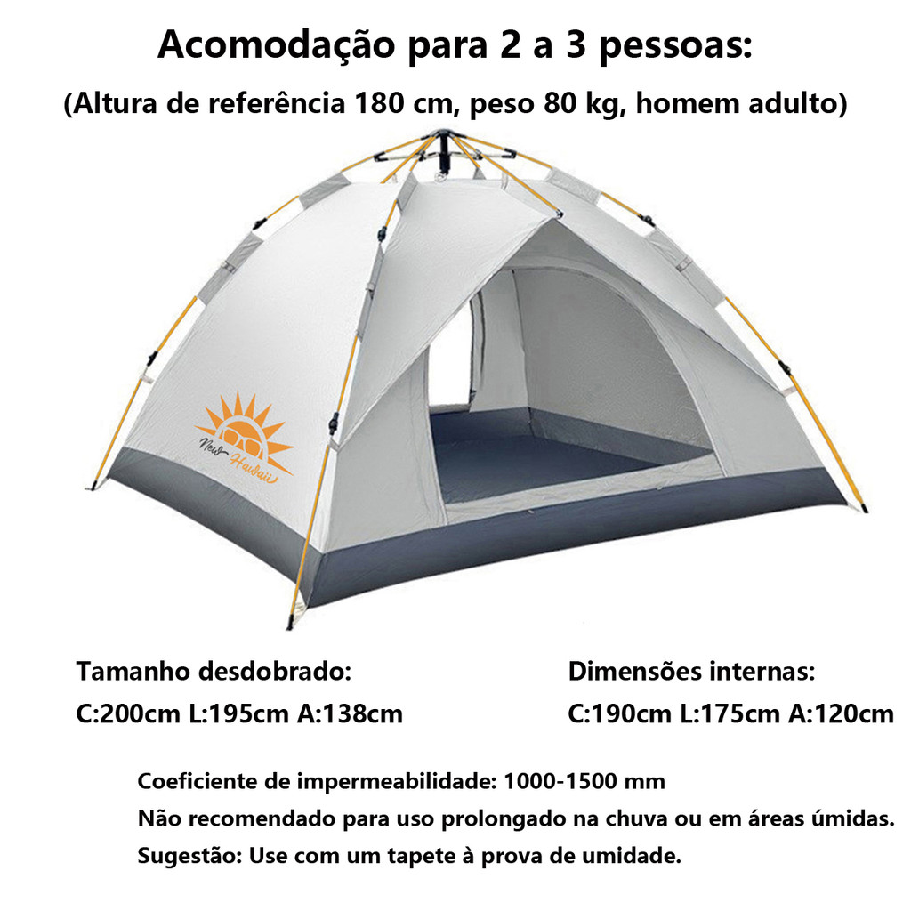 Barraca de Camping Automática Pop-up Portátil,Tendas Acampamento Para 3-4 Pessoas 200cm*200cm*135cm