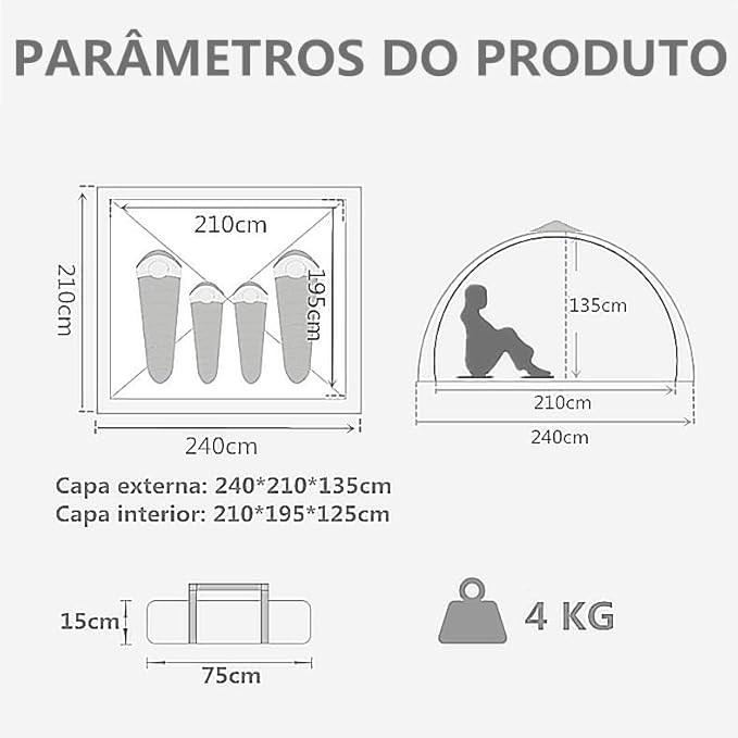 Barraca de camping de alta qualidade para 3-4 Pessoas, À Prova D ' Água Dupla-Camada 2 portas, instalação gratuita