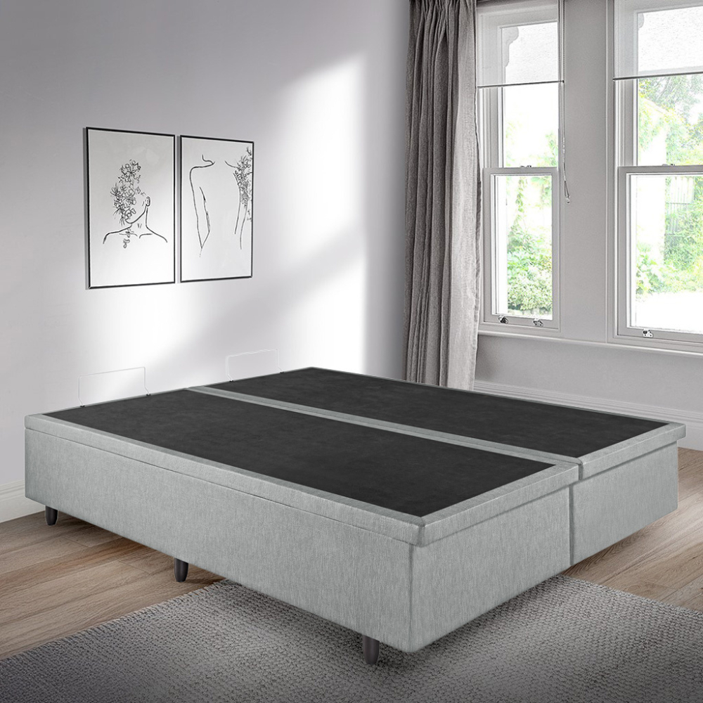 Base Box Baú Queen 158x198 Courino Linho Cinza