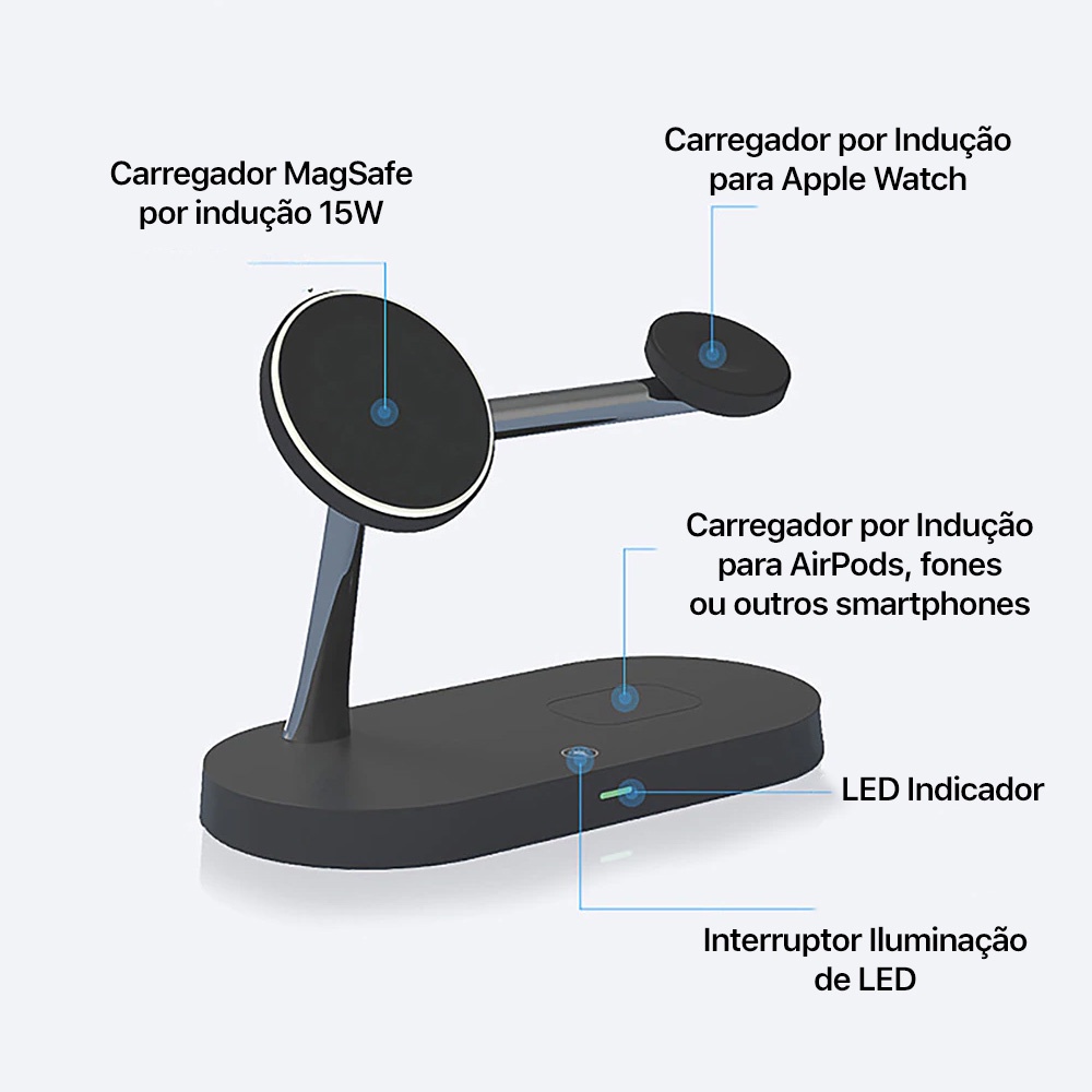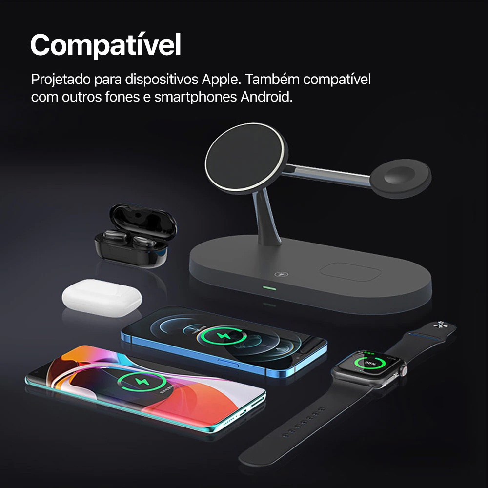 Base Carregadora Estação de Carregamento Sem Fio 5 em 1 MagSafe para iPhone, Apple Watch e AirPods