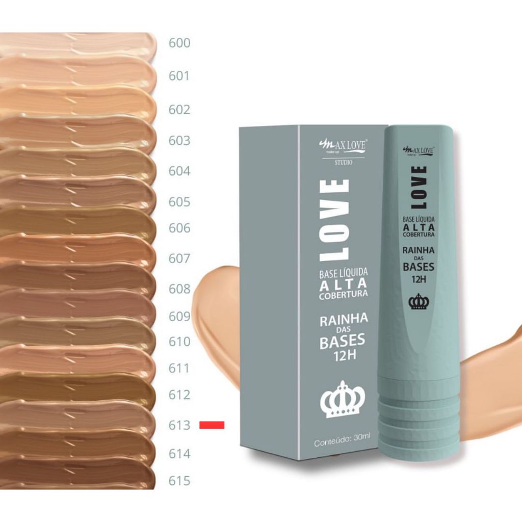 Base Líquida cobertura Rainha das Bases 12H- Max Love 30ml - unidade