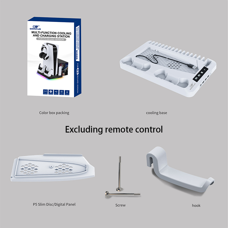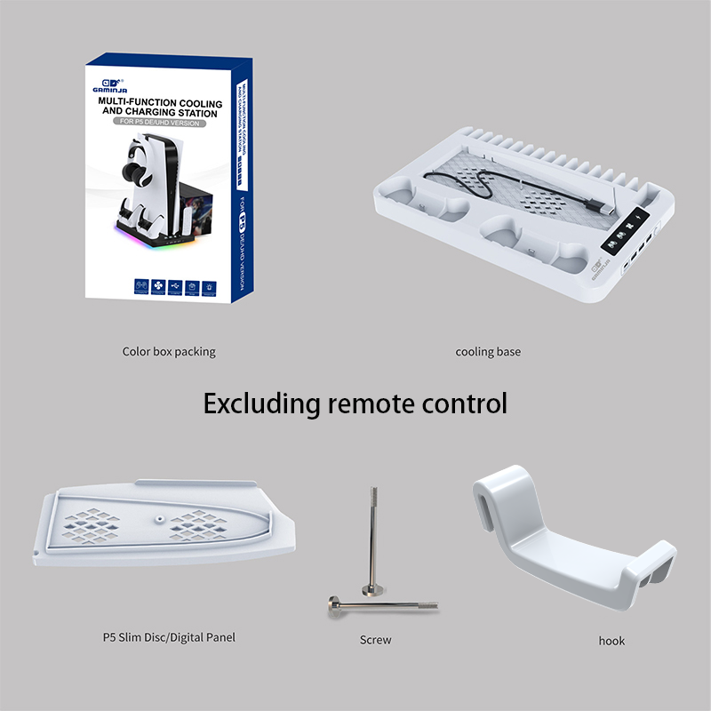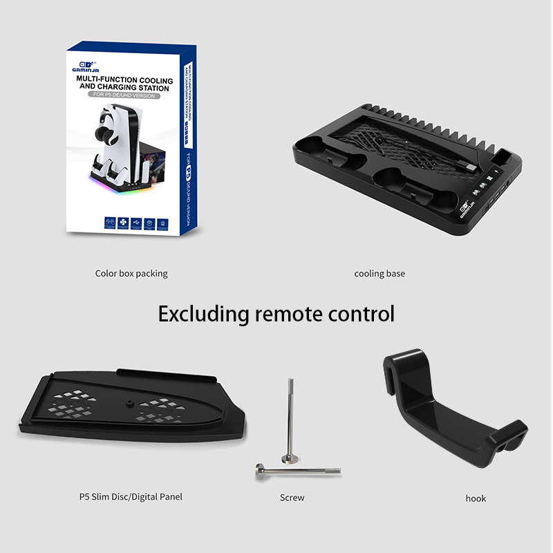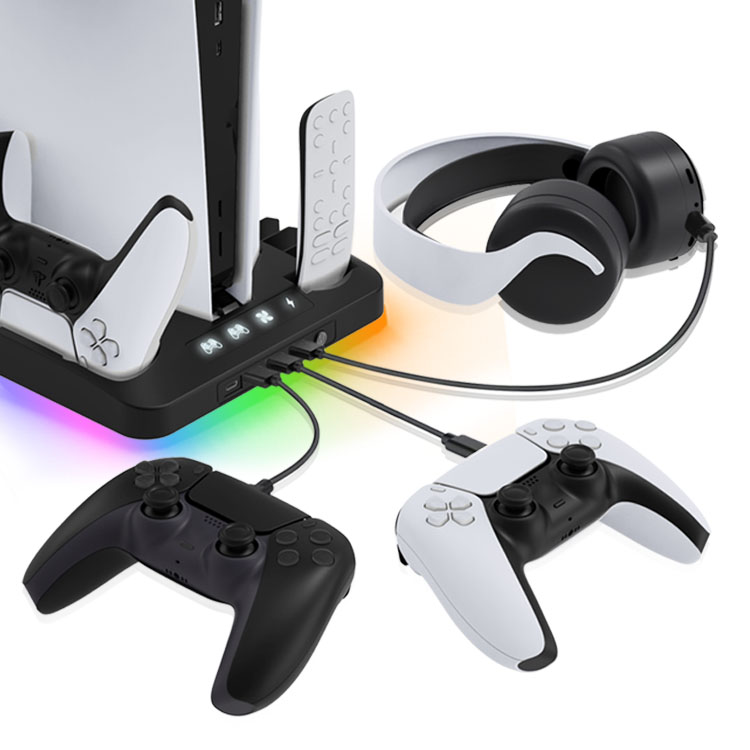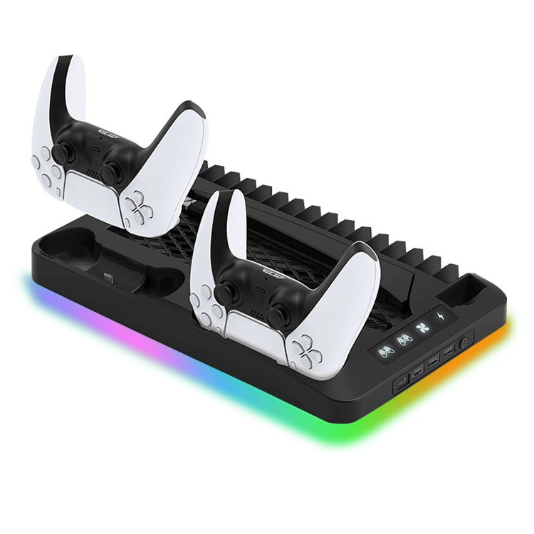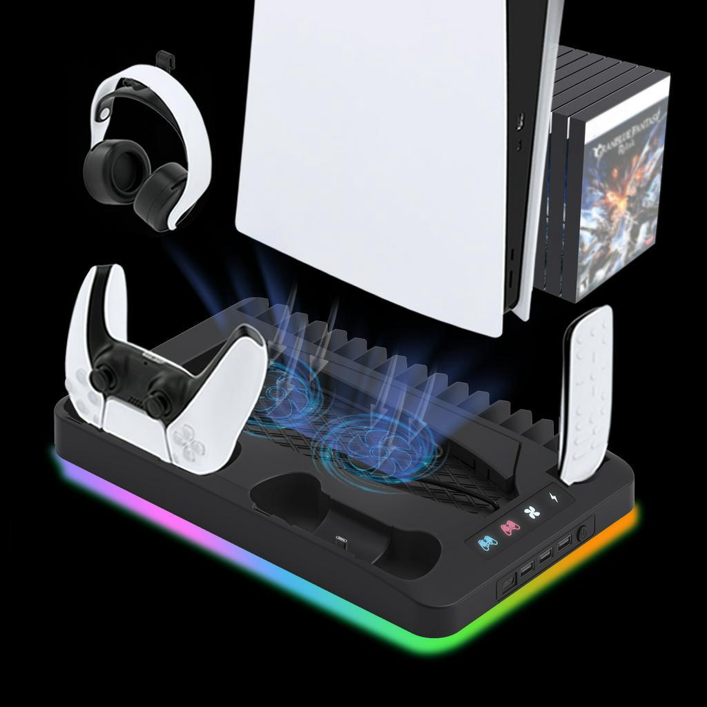 Base de Resfriamento Ventilador PS5 com Iluminação Colorida 7 Efeitos e Suporte de Armazenamento