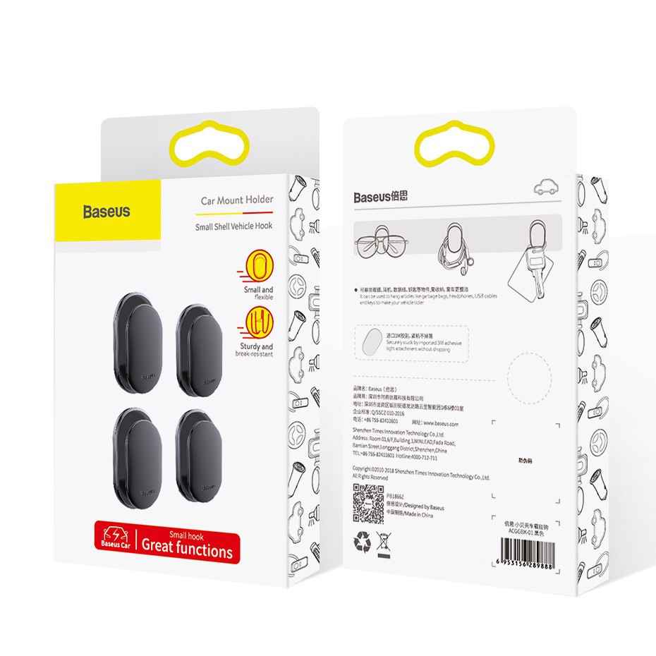 Baseus 4Pcs Highly Sturdy Sticker Mini Car Storage Hooks Support USB Cable Headphones and Keys
