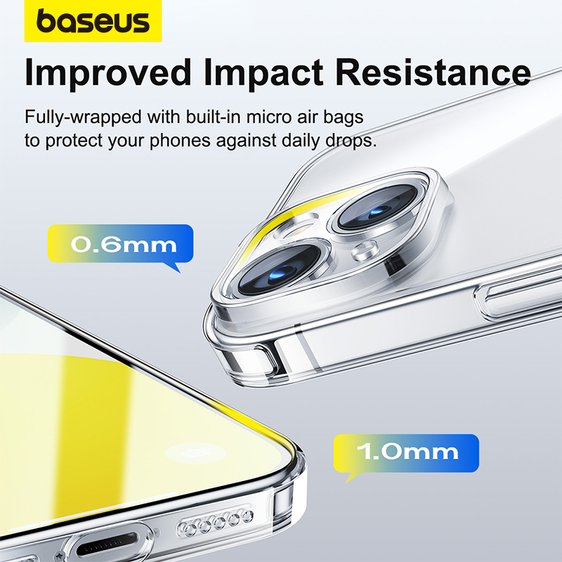 Baseus Estojo Transparente Base Para IPhone 15 Pro Max Macio TPU Plus Proteção Total Da Lente À Prova De Choque Tampa