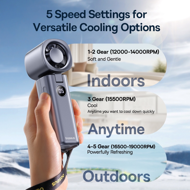 Baseus GoTrip DT1 Ventilador Portátil Dobrável De Alta Velocidade Mini E Com 5 Velocidades Capacidade De 4000mAh