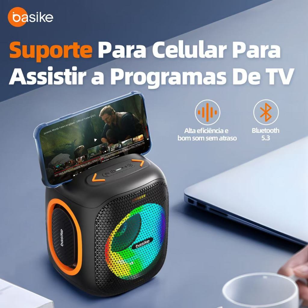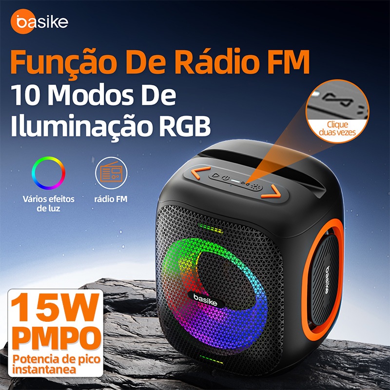 Basike Caixa De Som Portátil Bluetooth HiFi Subwoofer Tws1+1 Ipx5 Com Rgb/FM Speaker RAD127