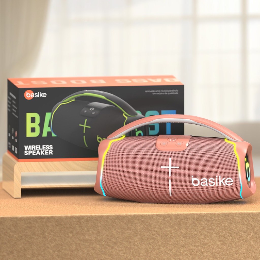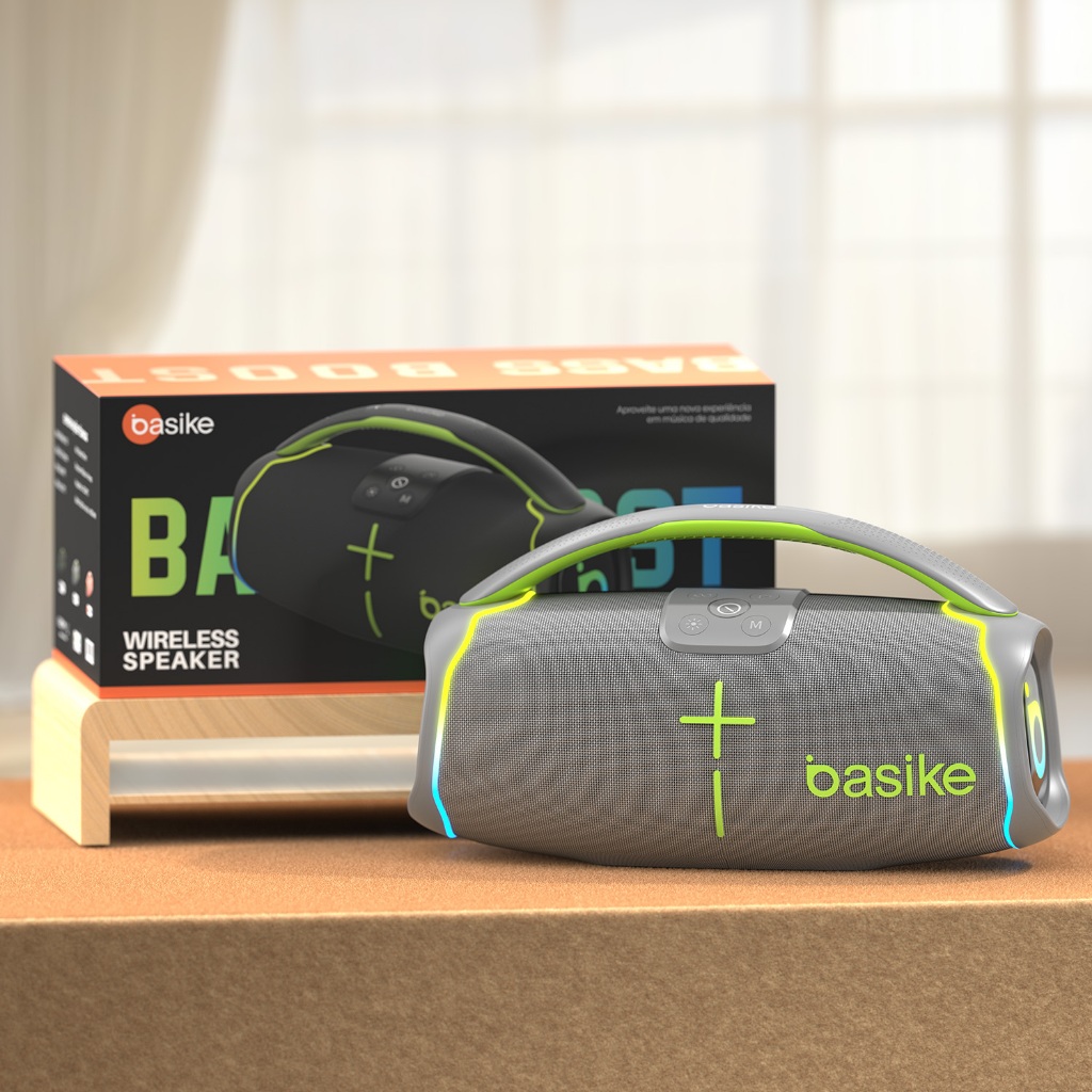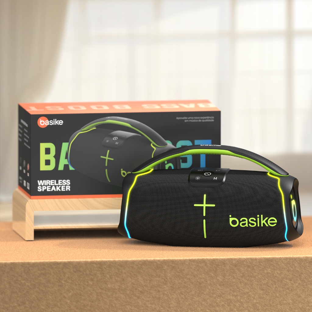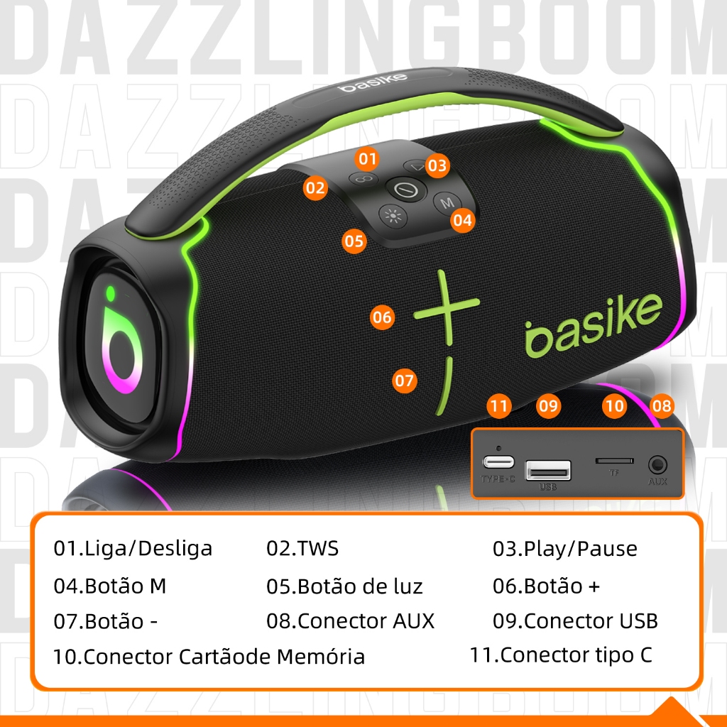 Basike Caixa de Som 60W Bluetooth V5.3 IPX6 com Power Bank Boombox 3, 8000 mah de bateria - PRETO