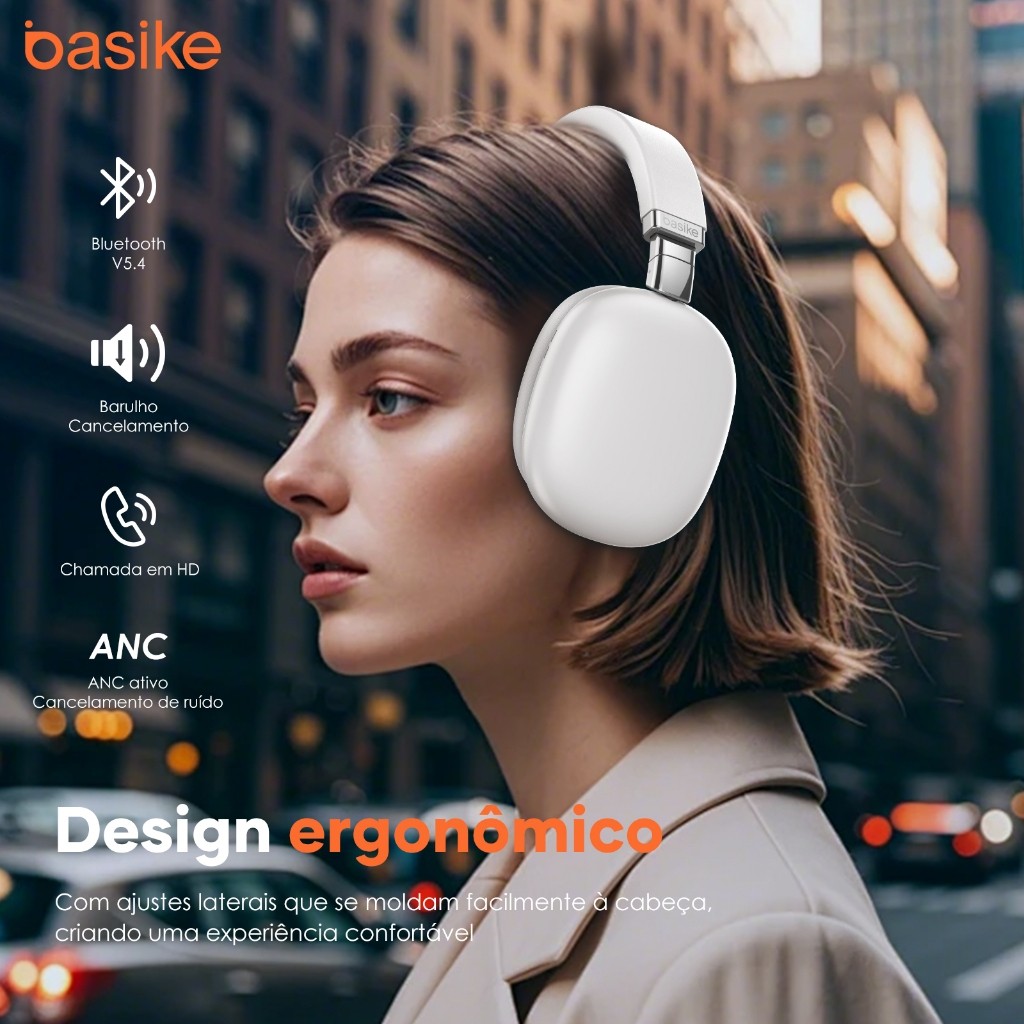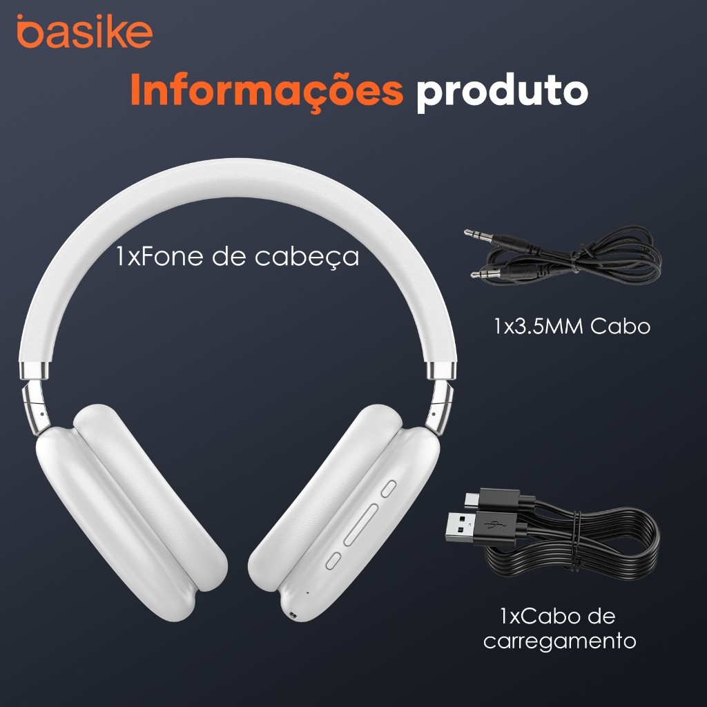 Basike Fone De Ouvido Bluetooth Estéreo Sem Fio 5.0 Hifi Dobrável Esporte Headset
