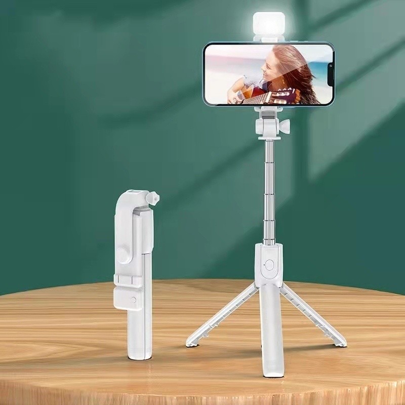 Bastão Pau de selfie Tripé Retrátil Com Luz LED Controle Bluetooth Celular MARISA