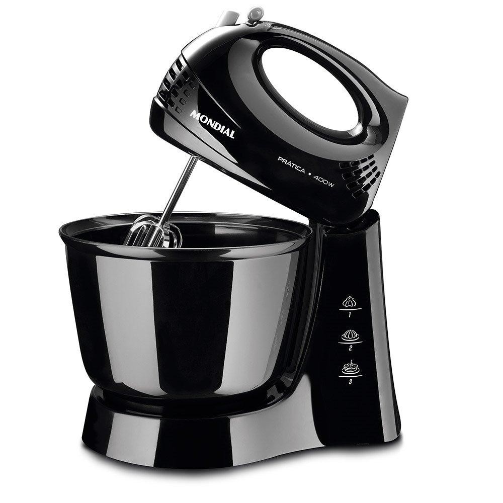 Batedeira Mondial Prática B44B | 3 Velocidades + Turbo, 1 Tigela, 400W, Preta
