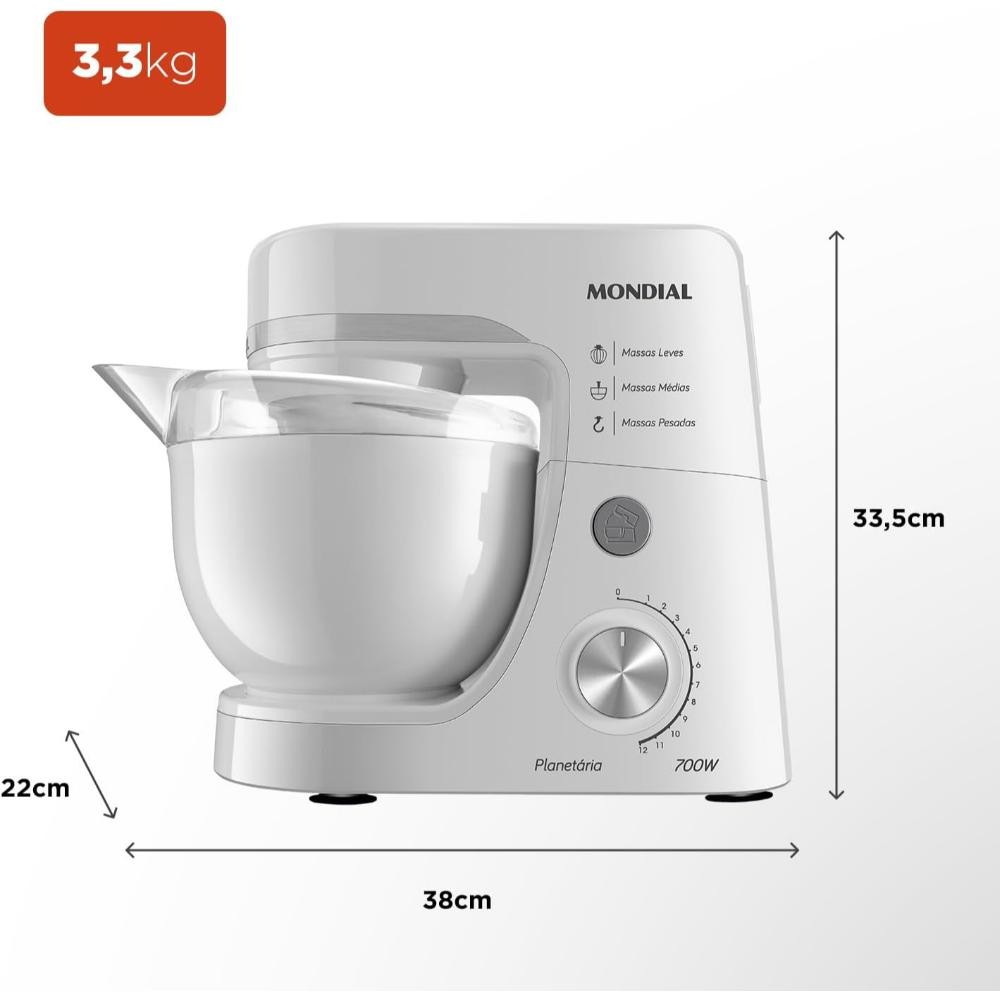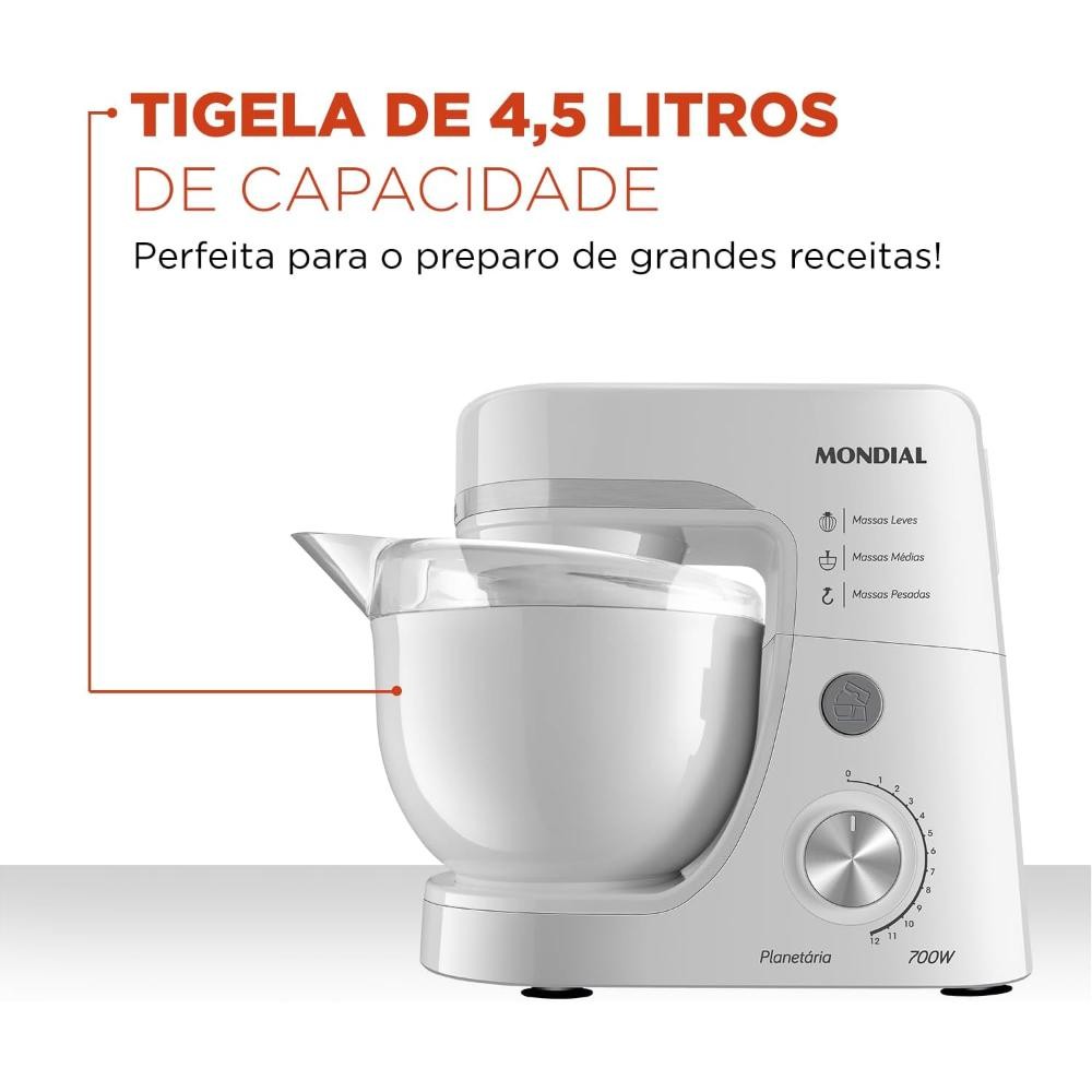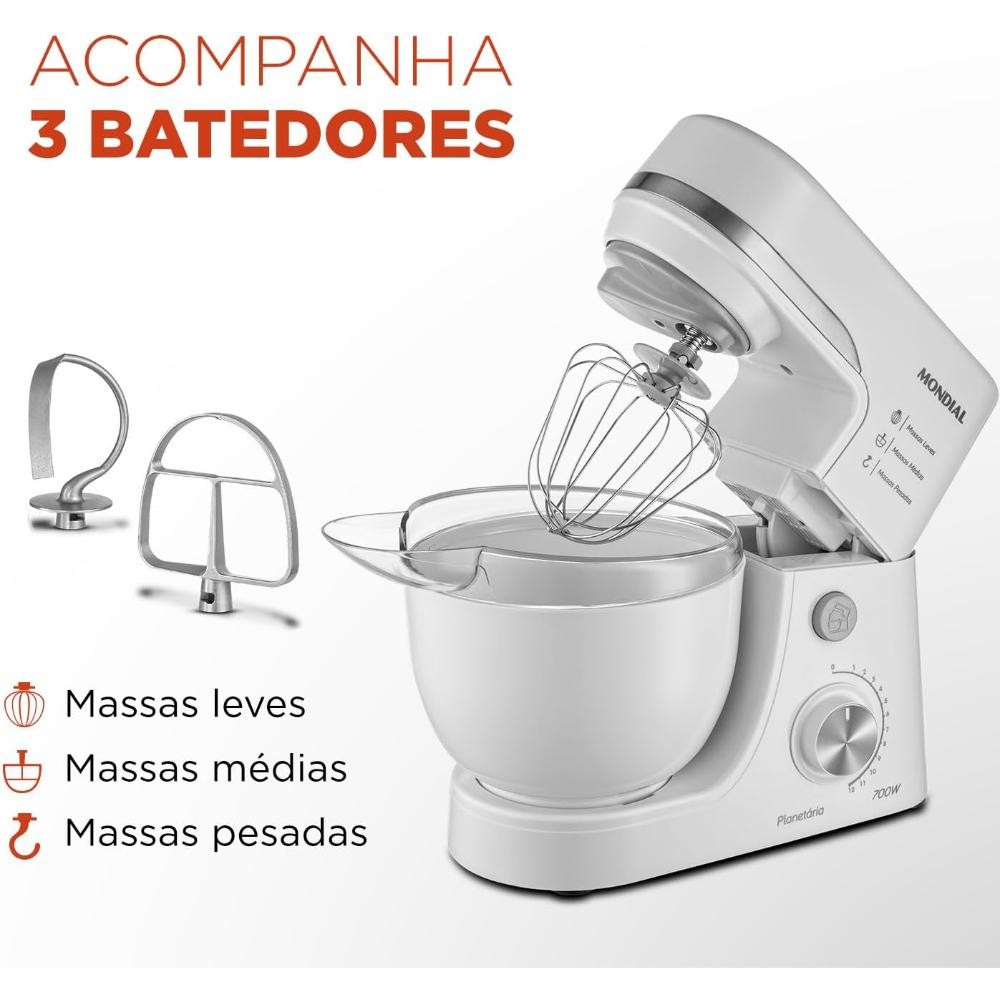 Batedeira Planetária Branca 4,5l 700w 127v - bp-03-w - Mondial
