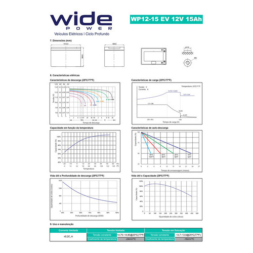 Bateria Wide 12v 15ah Ciclo Profundo Para Bicicleta Elétrica