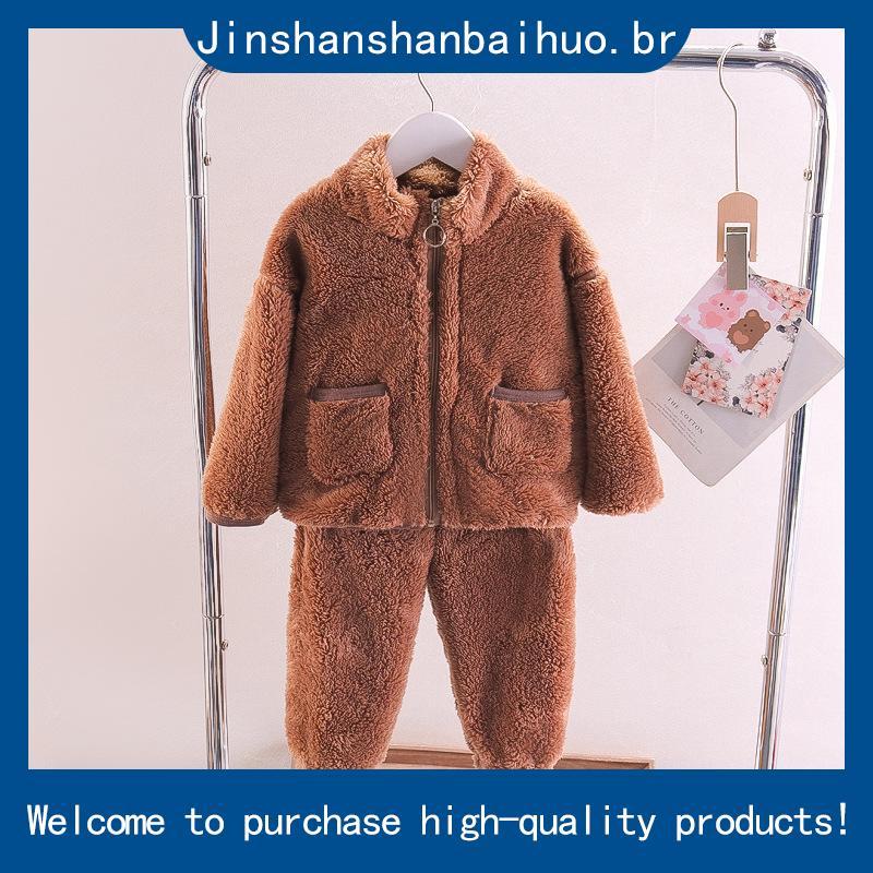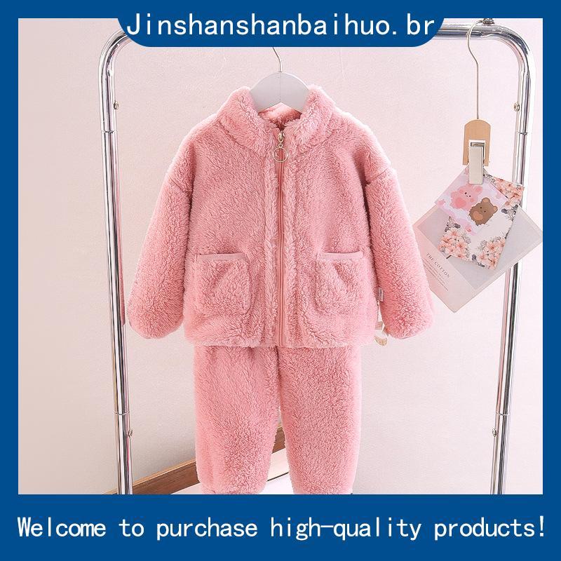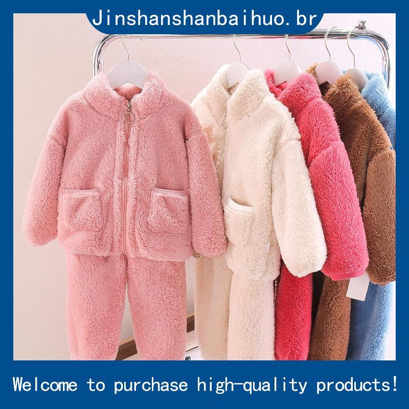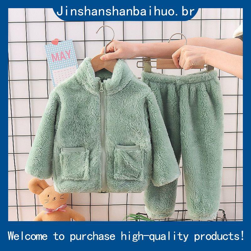 Bebê Outono Inverno Meninos Meninas Esportes Sólidos 2 Pçs Terno De Pelúcia Flanela Pijamas Conjunto De Para Criancas Roupas O Lar