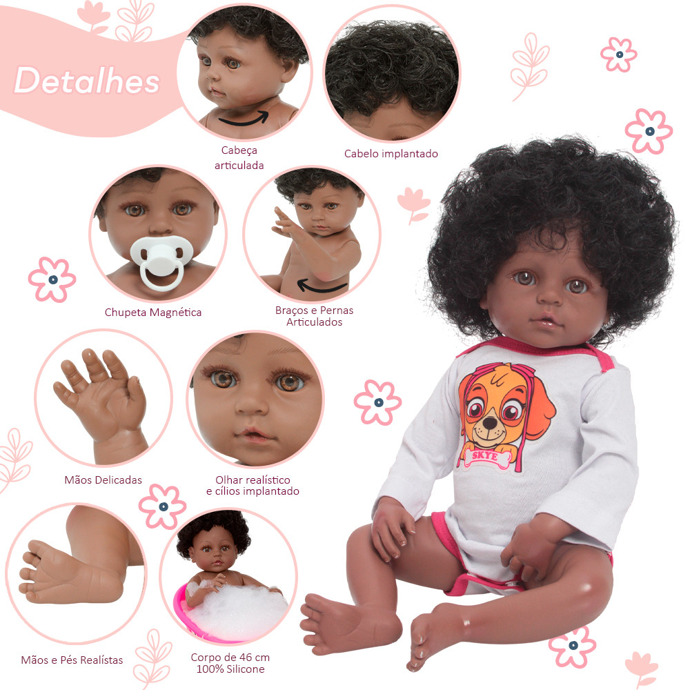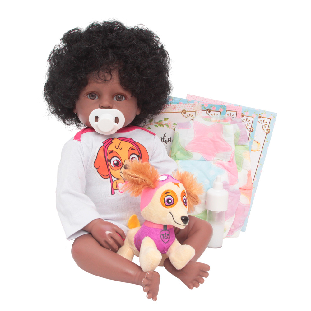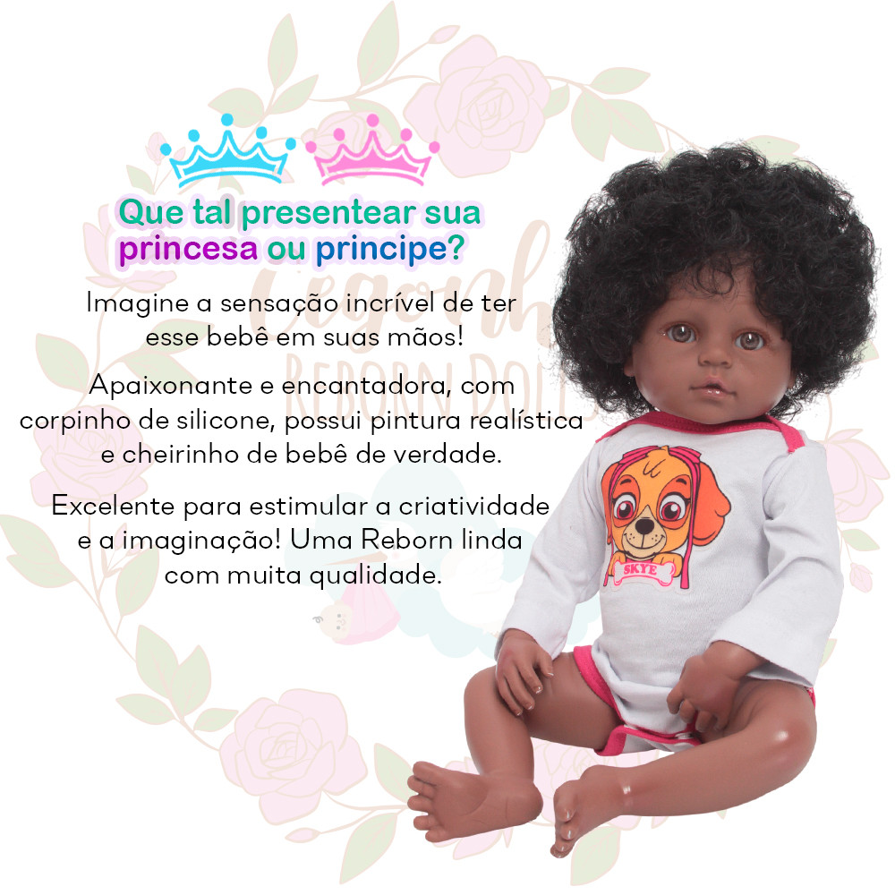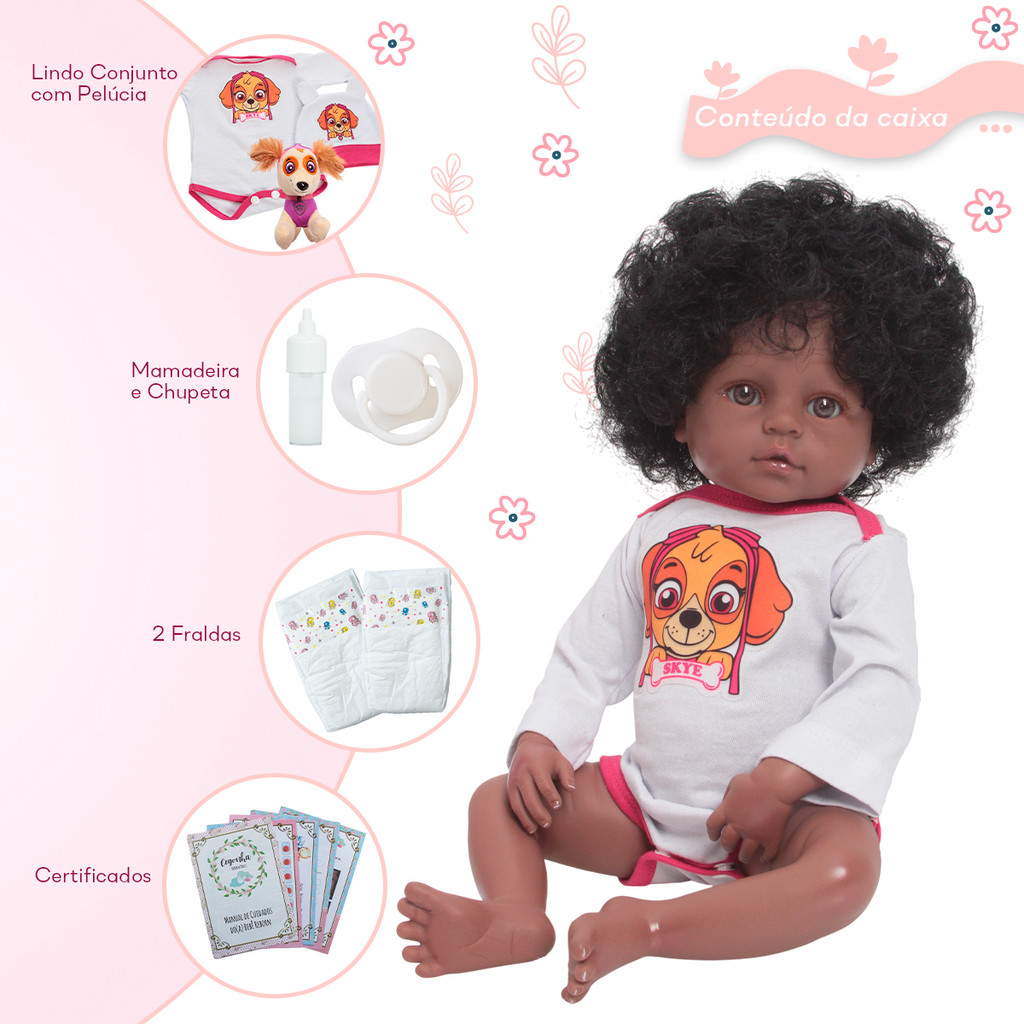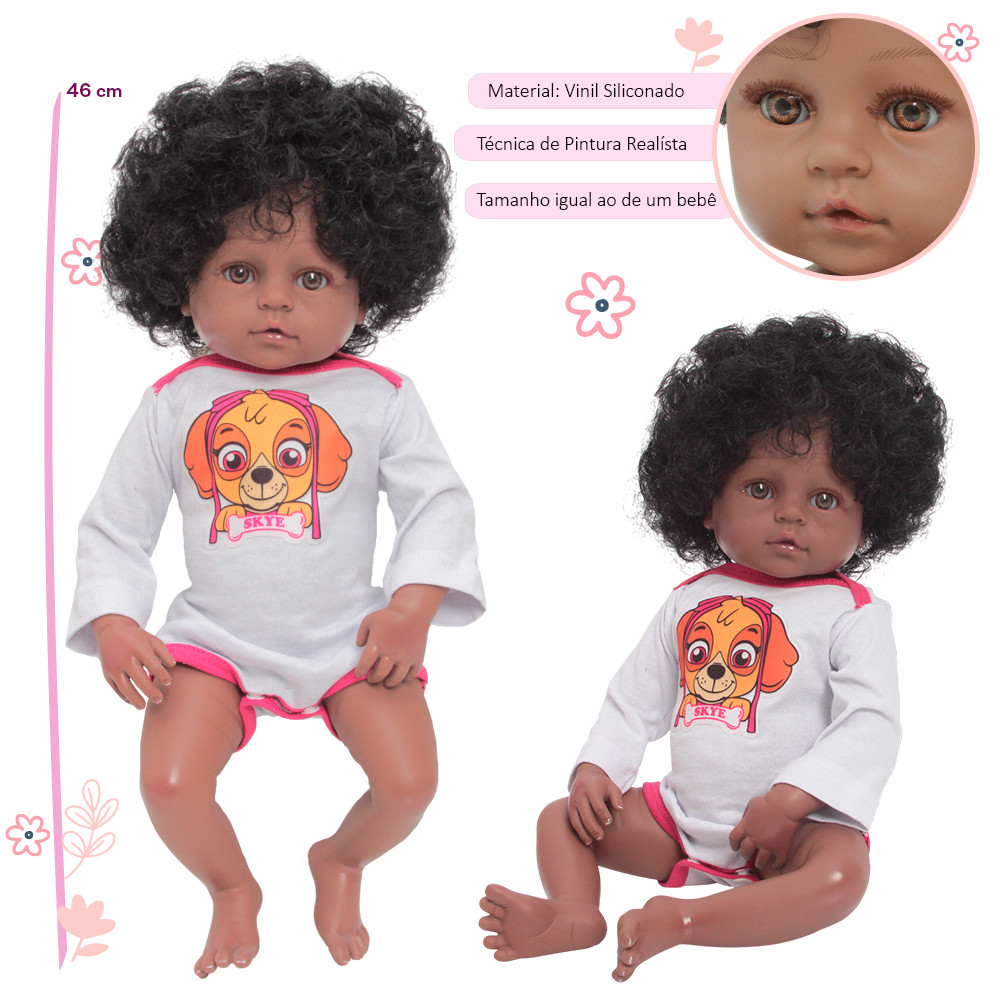 Bebê Reborn Boneca Realista Negra Cabelo Cacheado + Itens