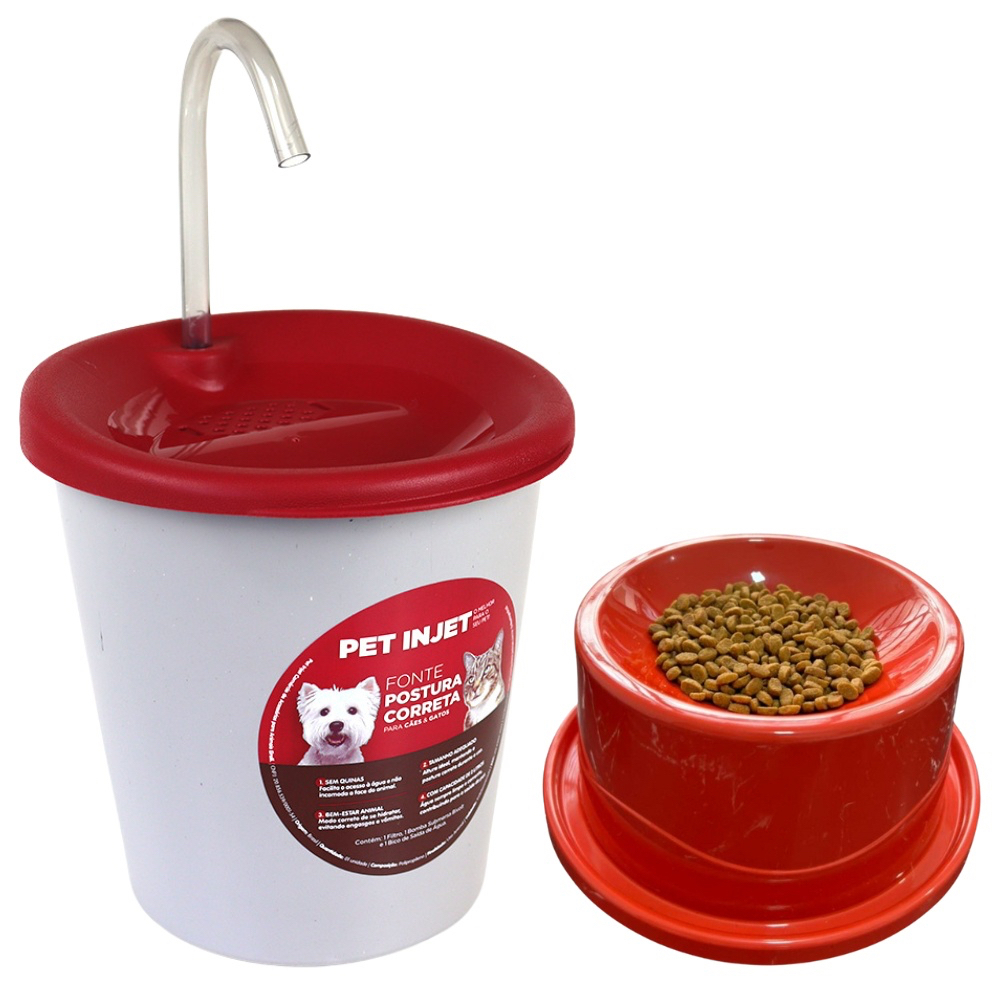 Bebedouro Fonte Gato Postura Correta Bivolt + Comedouro Postural Alto