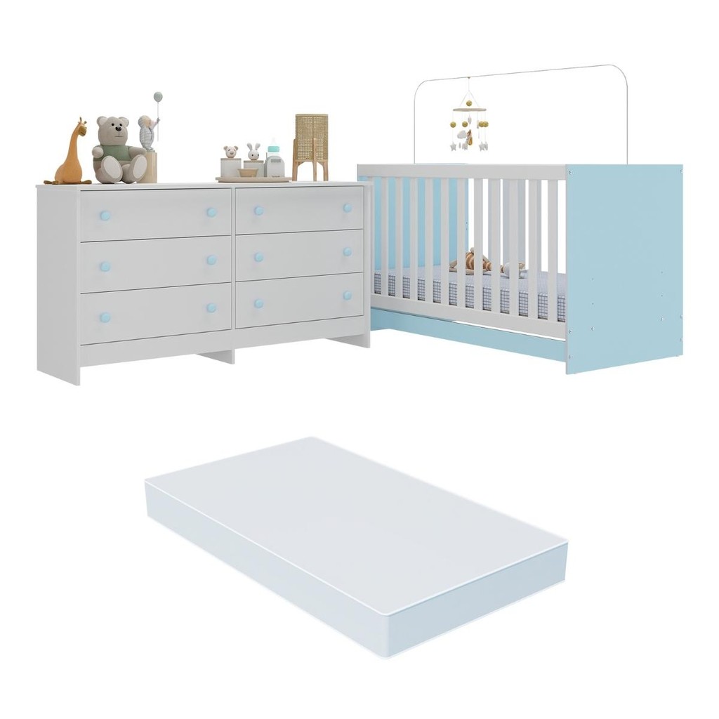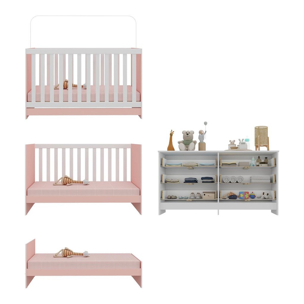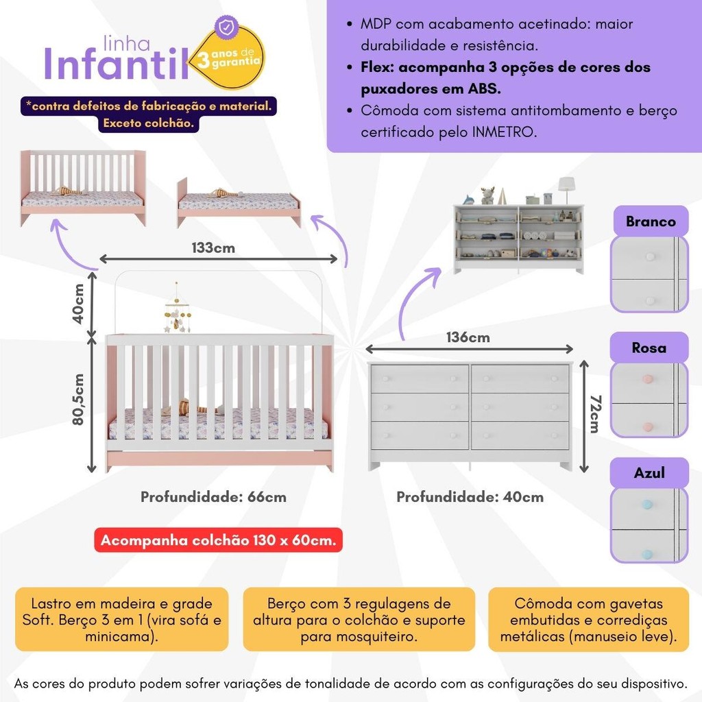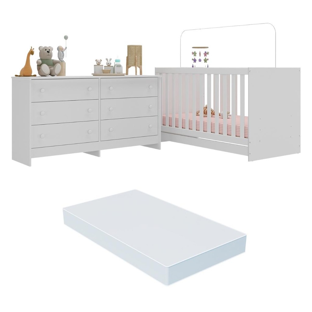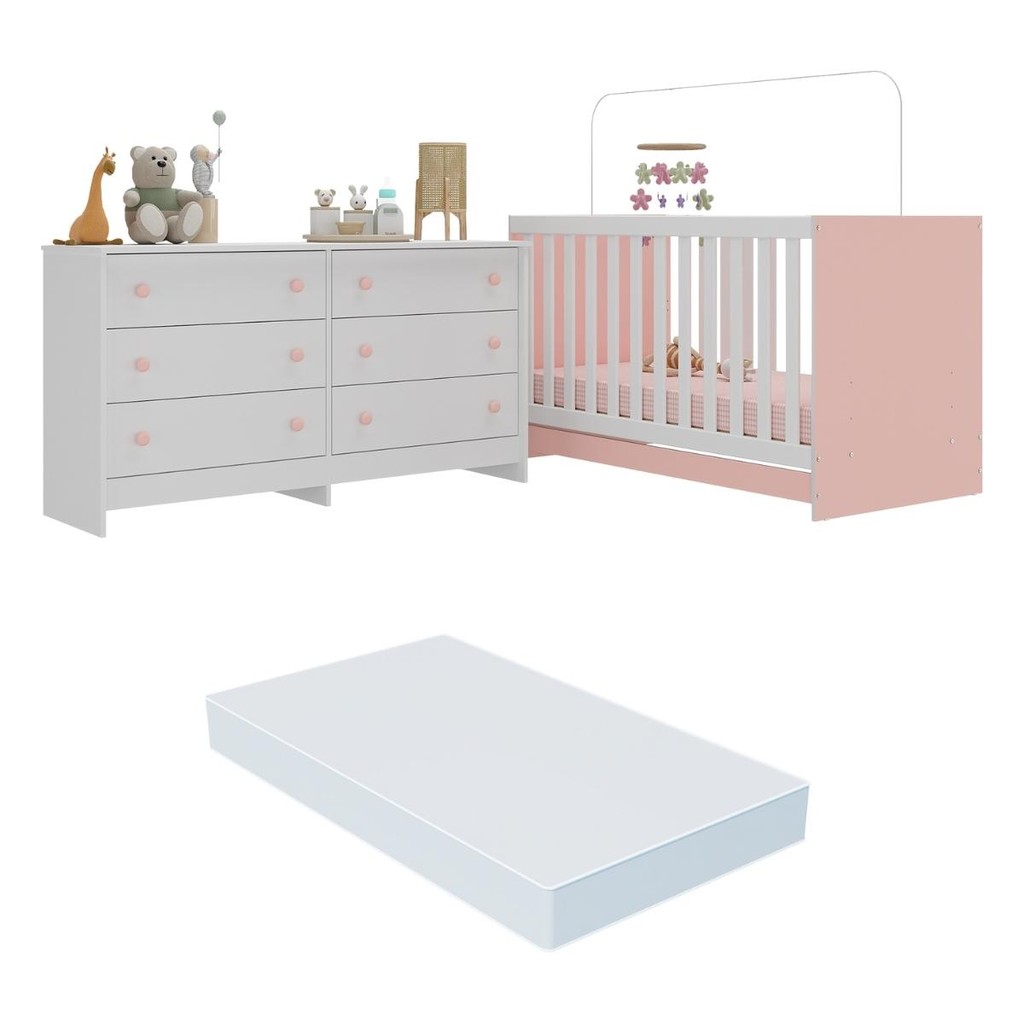 Berço 3 em 1 com Colchão Incluso e Cômoda Doce de Leite Multimóveis MP4298