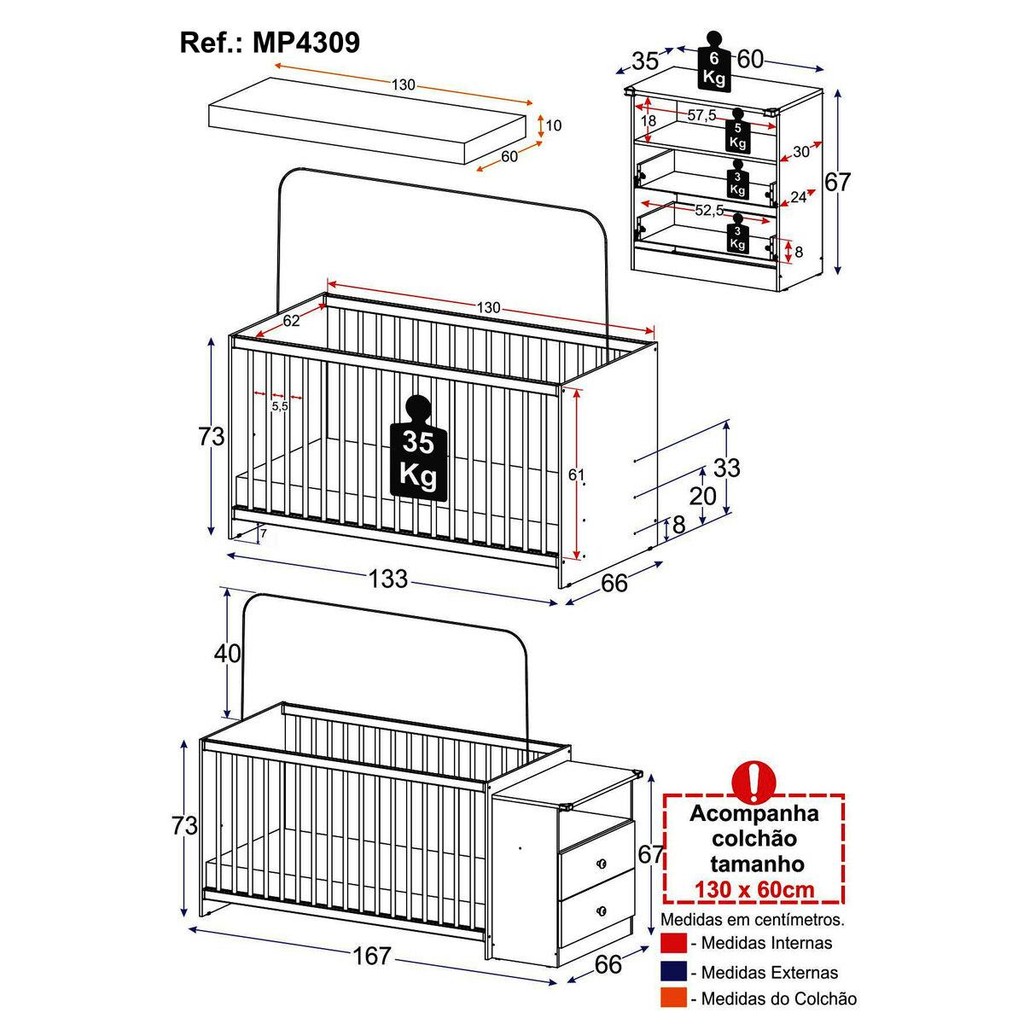 Berço Cômoda com Colchão Incluso Meu Bebê Multimóveis MP4309