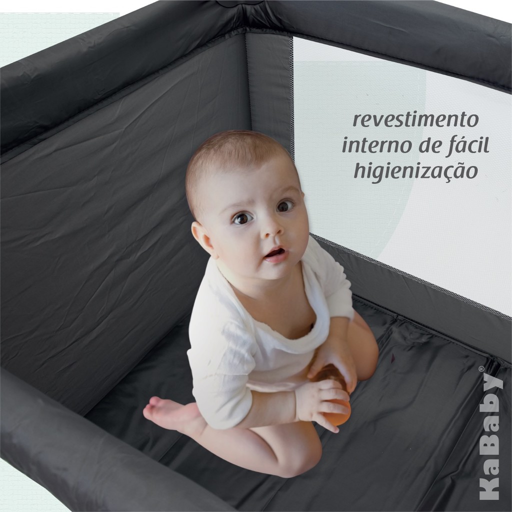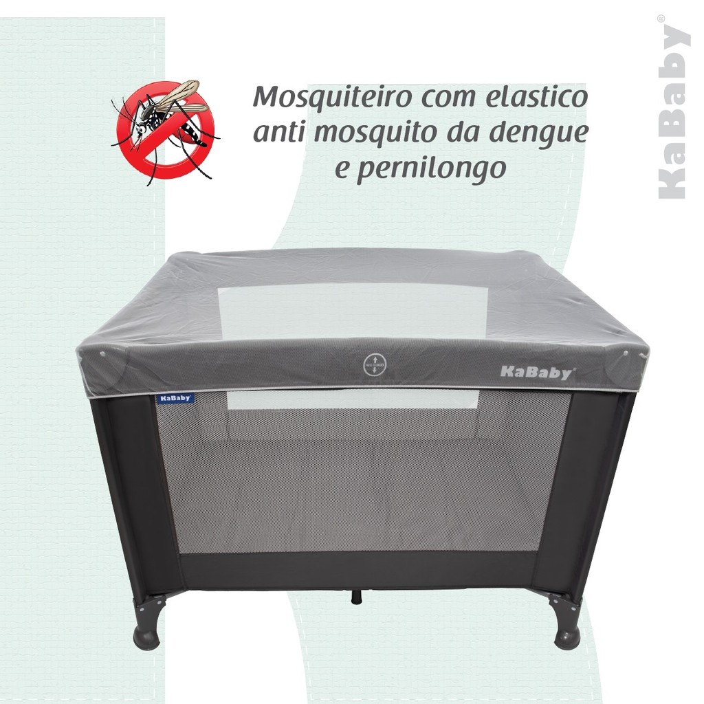 Berço Portátil Infantil Cercado Desmontável Com Mosquiteiro Adventure Cinza Kababy