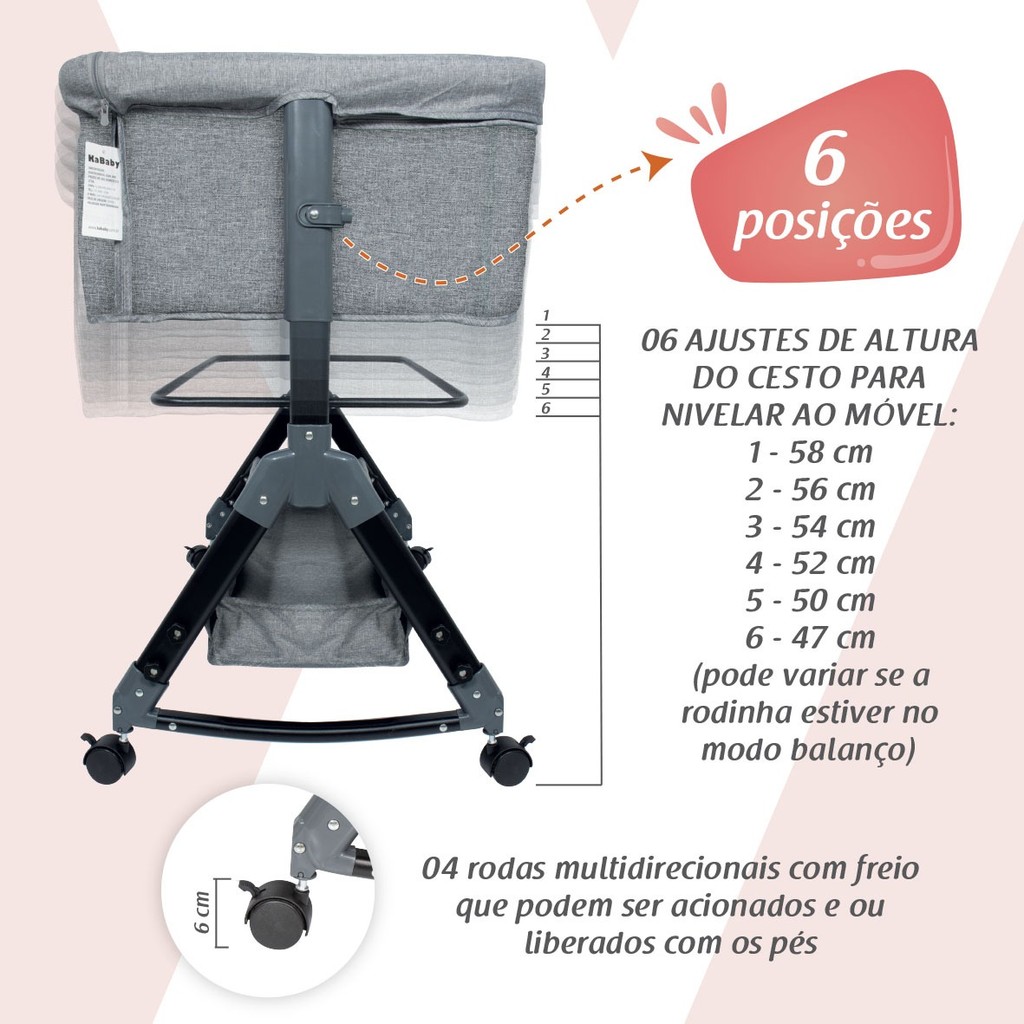 Berço Portátil Moises Co-bed Até 15kg C/ Balanço Mosquiteiro e Cesto Luna - KaBaby