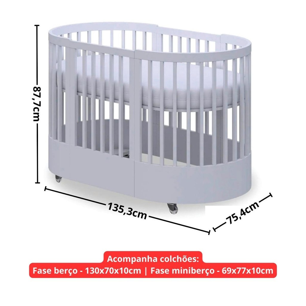 Berço Redondo Wave Divicar 3 em 1 com Colchões Inclusos CR40123