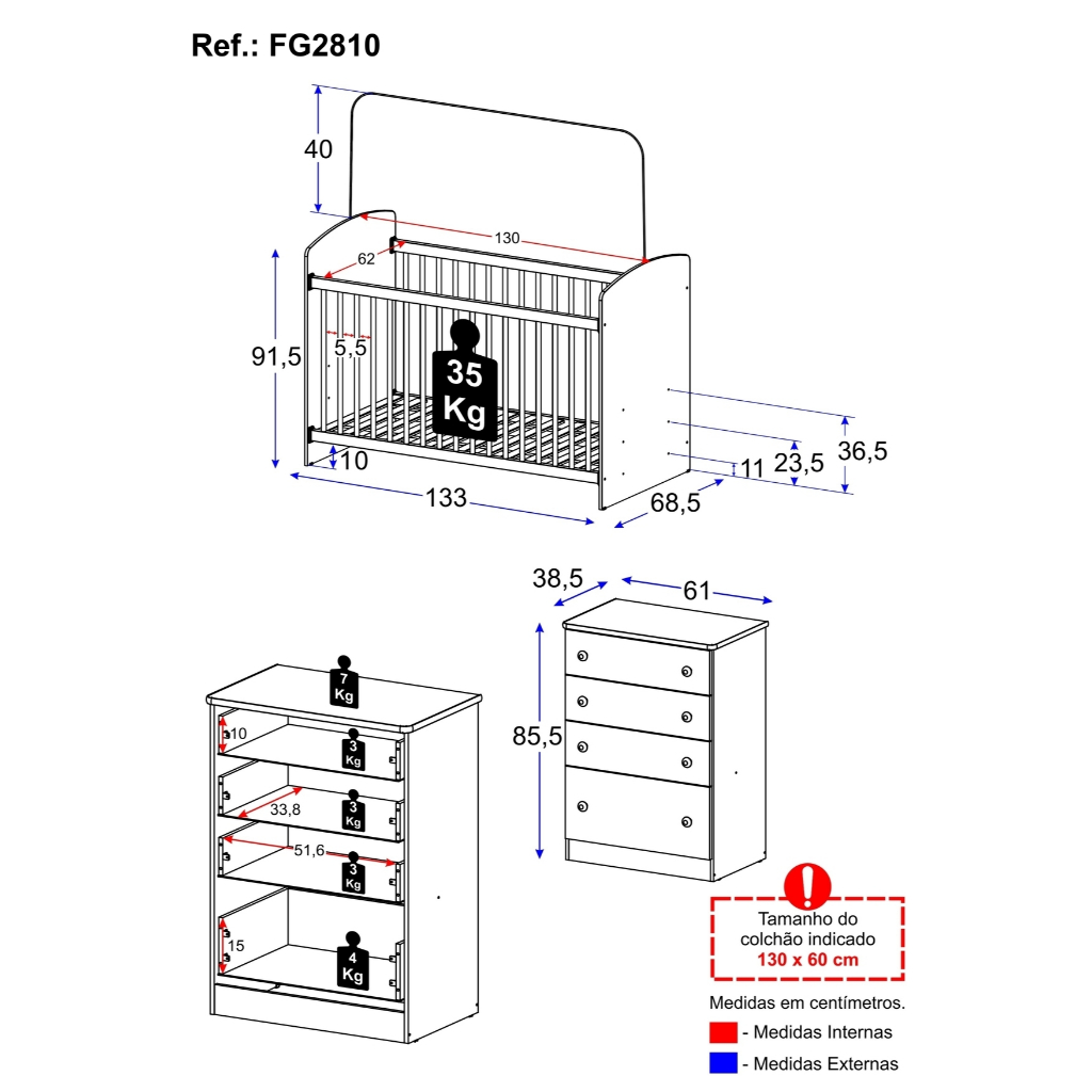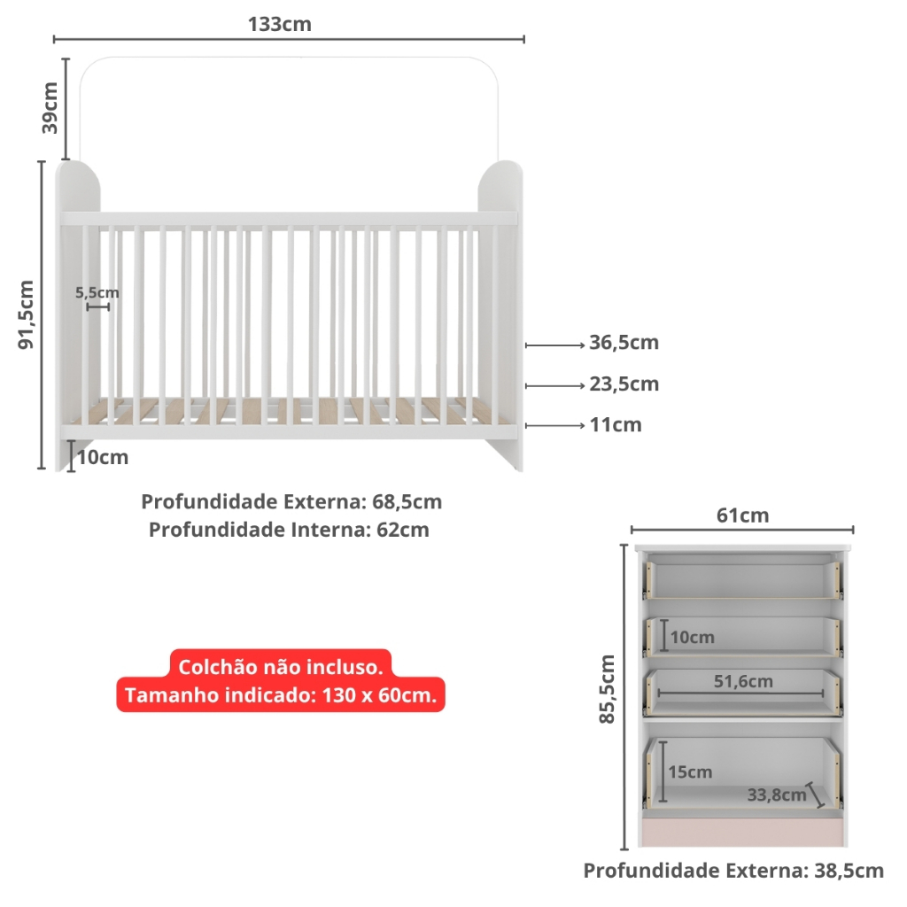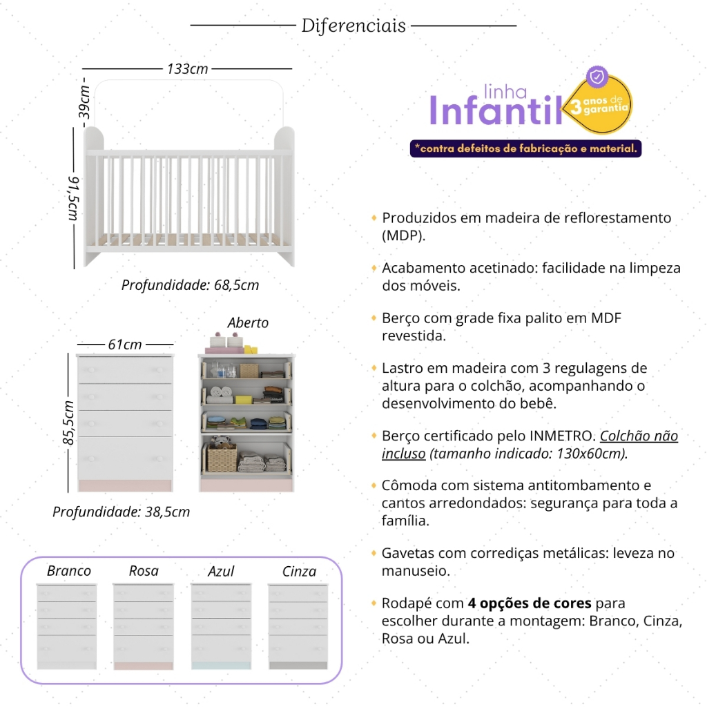 Berço e Cômoda Multimóveis João e Maria FG2810 Branco
