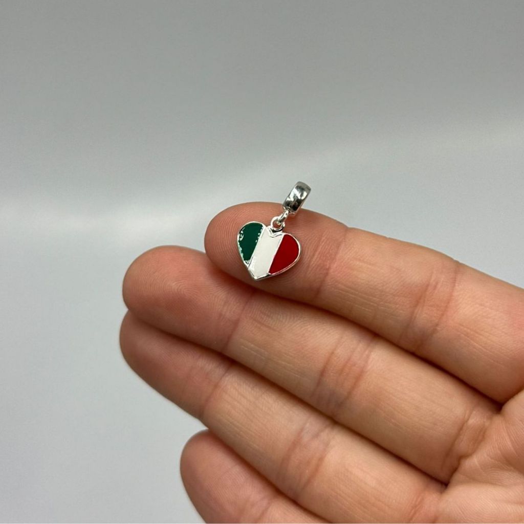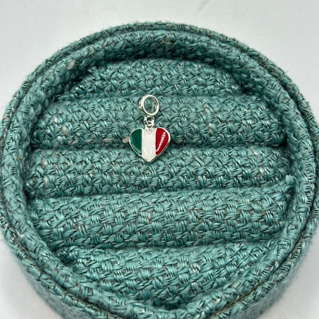 Berloque Prata 925 Bandeira Itália em formato de coração