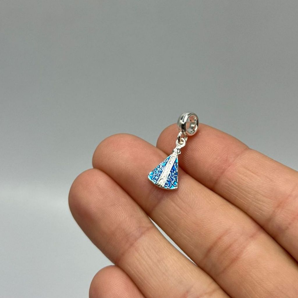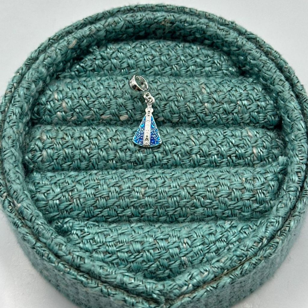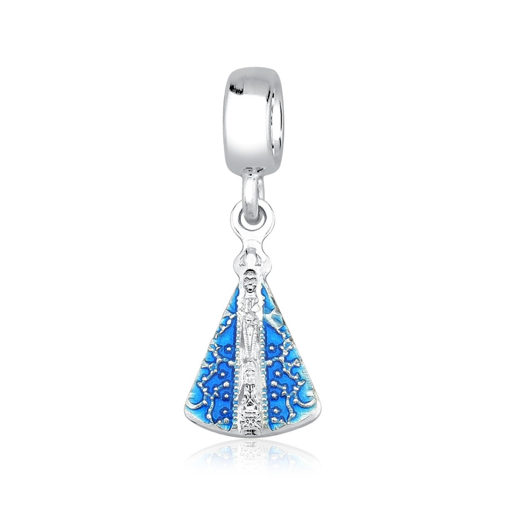 Berloque Prata 925 Nossa Senhora Aparecida manto azul 9mm x 12mm