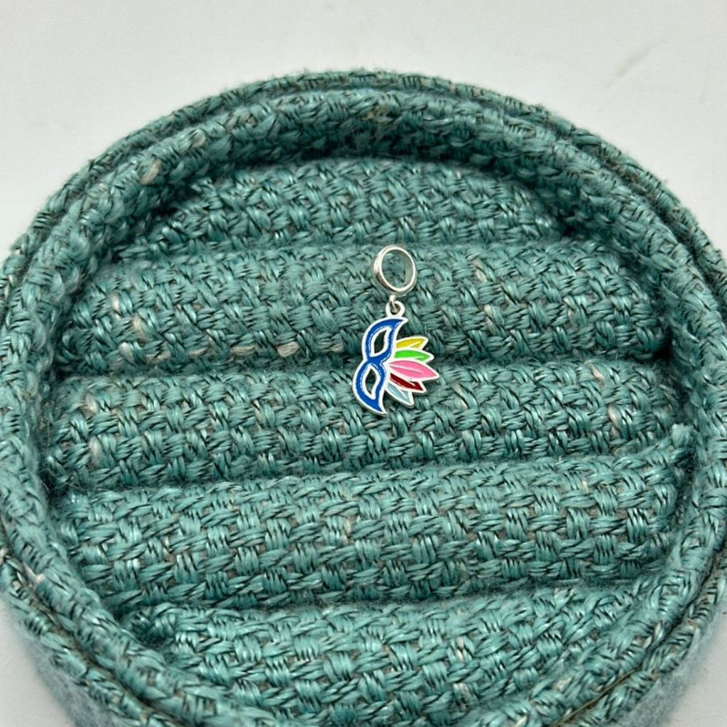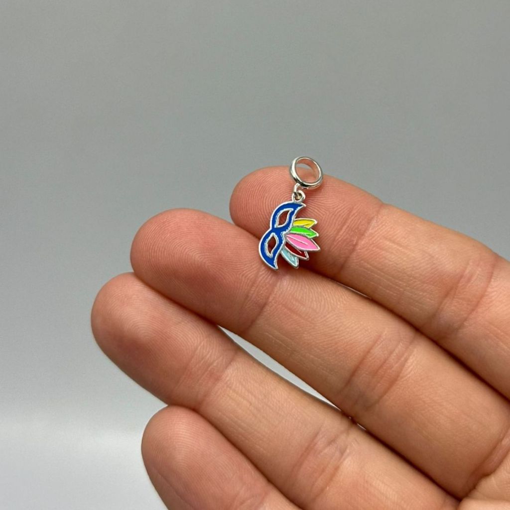 Berloque de Prata 925 Máscara de Carnaval Resinada