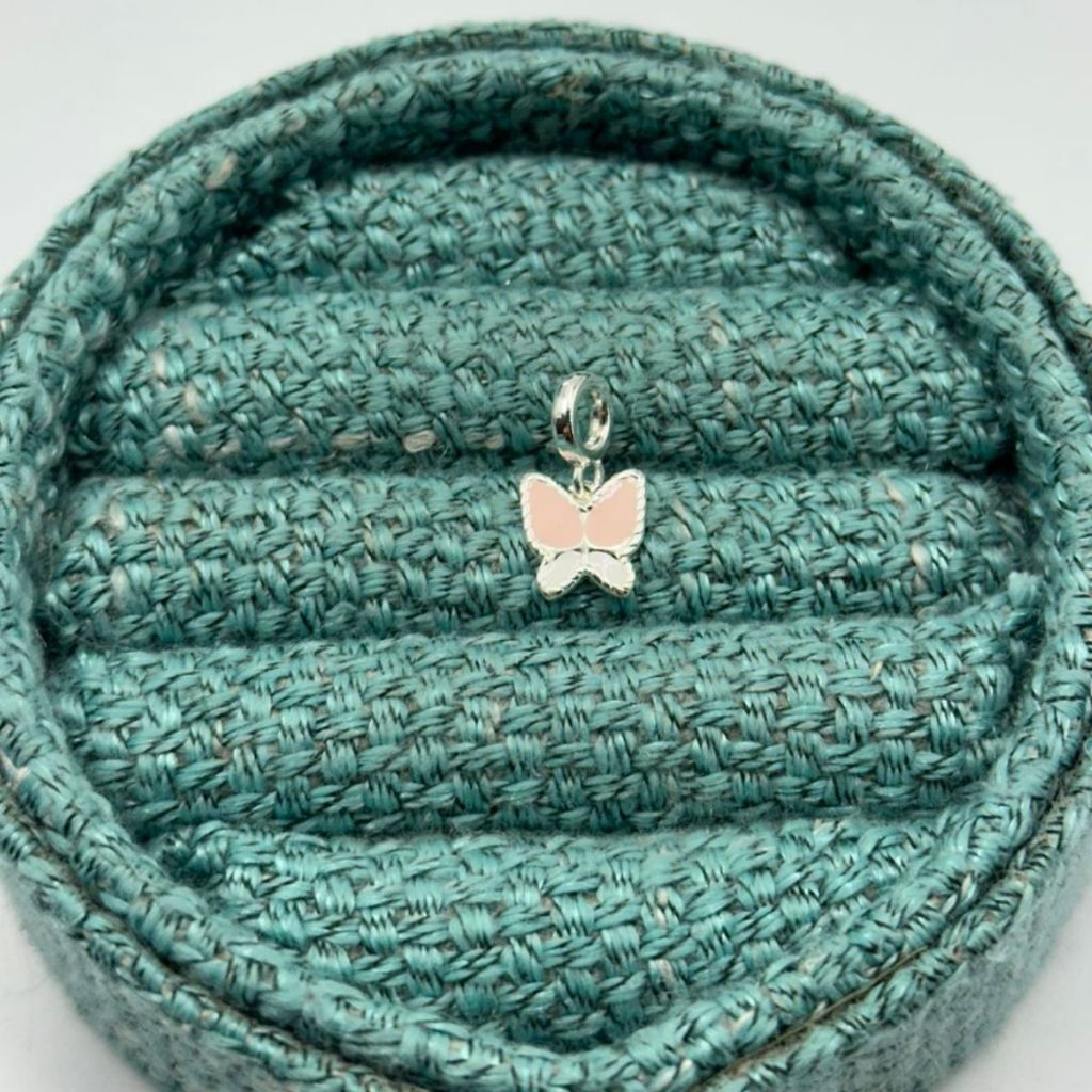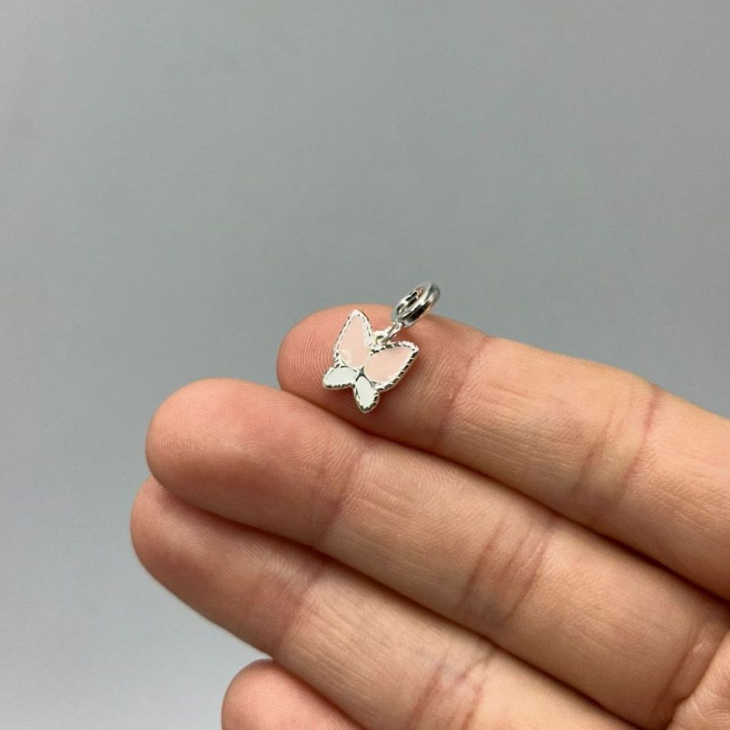 Berloque para Pulseira de Prata 925 Borboleta Rosa e Branco
