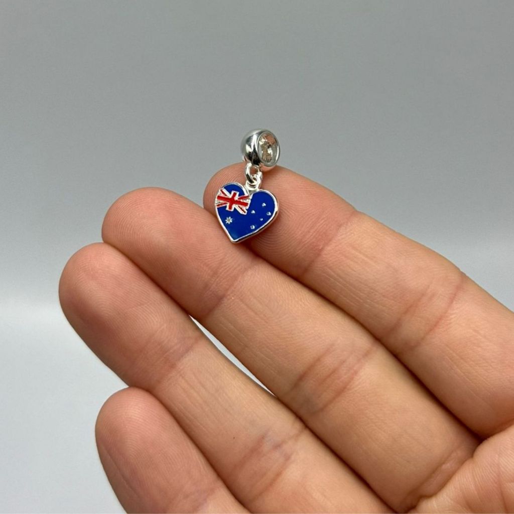 Berloque Prata 925 Bandeira Austrália formato de coração