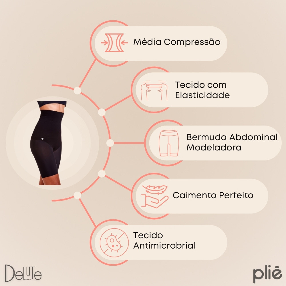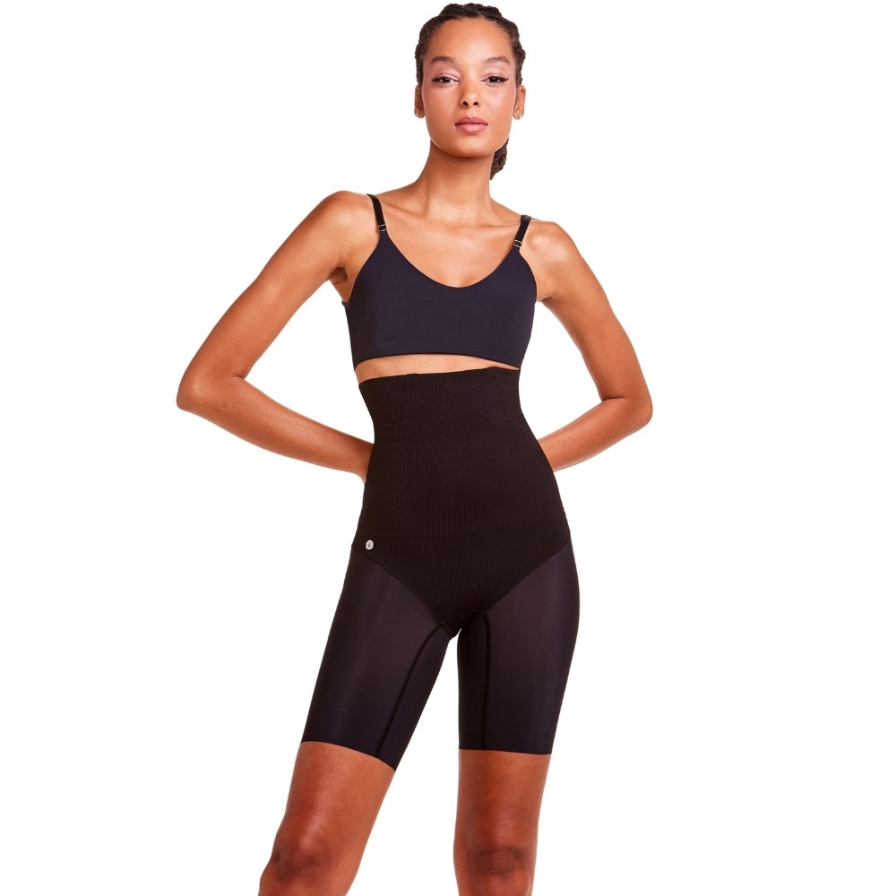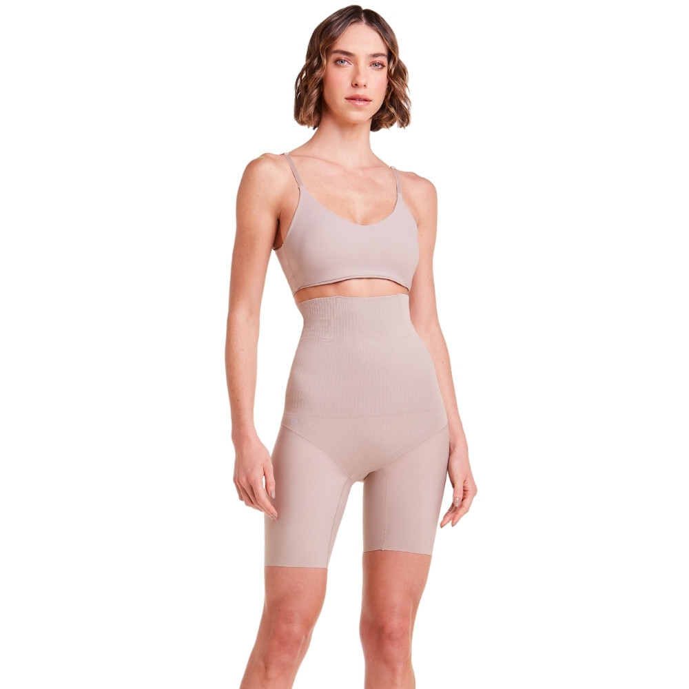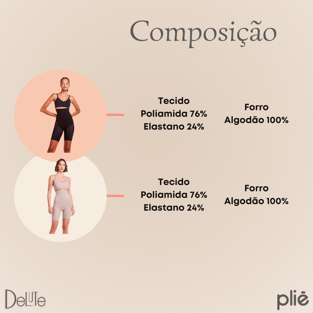 Bermuda Cintura Alta Plié Feminina Modeladora Abdominal com Mini Barbatanas Reduz Medidas Control