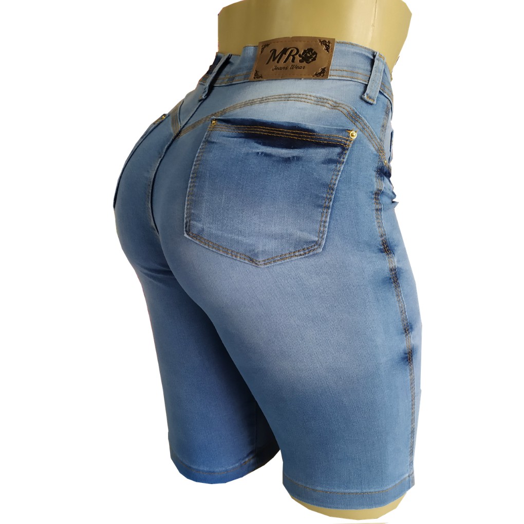 Bermuda Feminina Ciclista Jeans Lycra Ate O Joelho