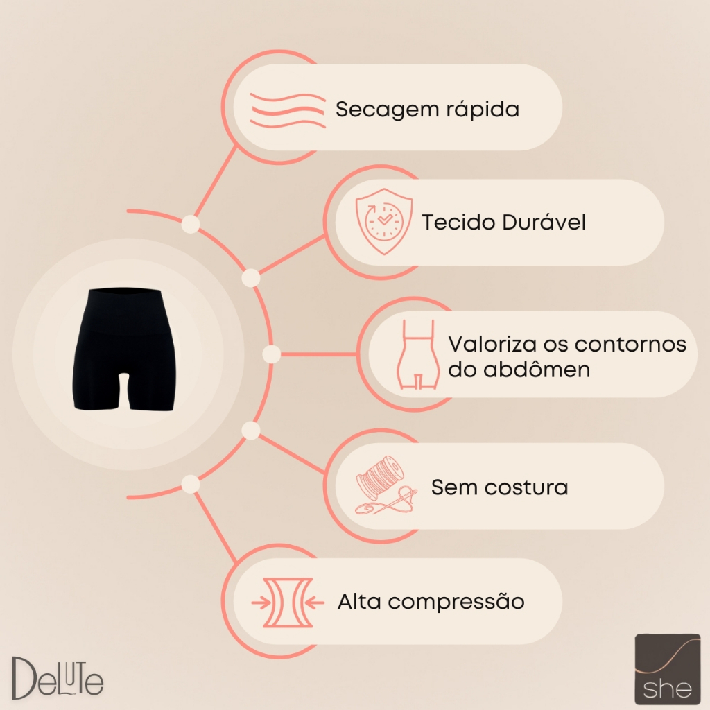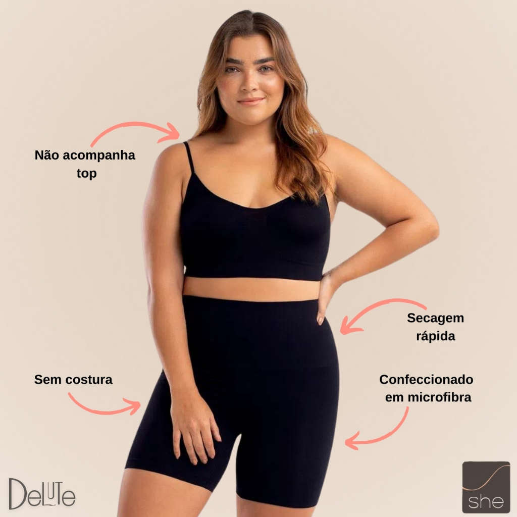 Bermuda Short Microfibra SHE Cintura Alta Modeladora de Leve Compressao Sem Costura P ao GG