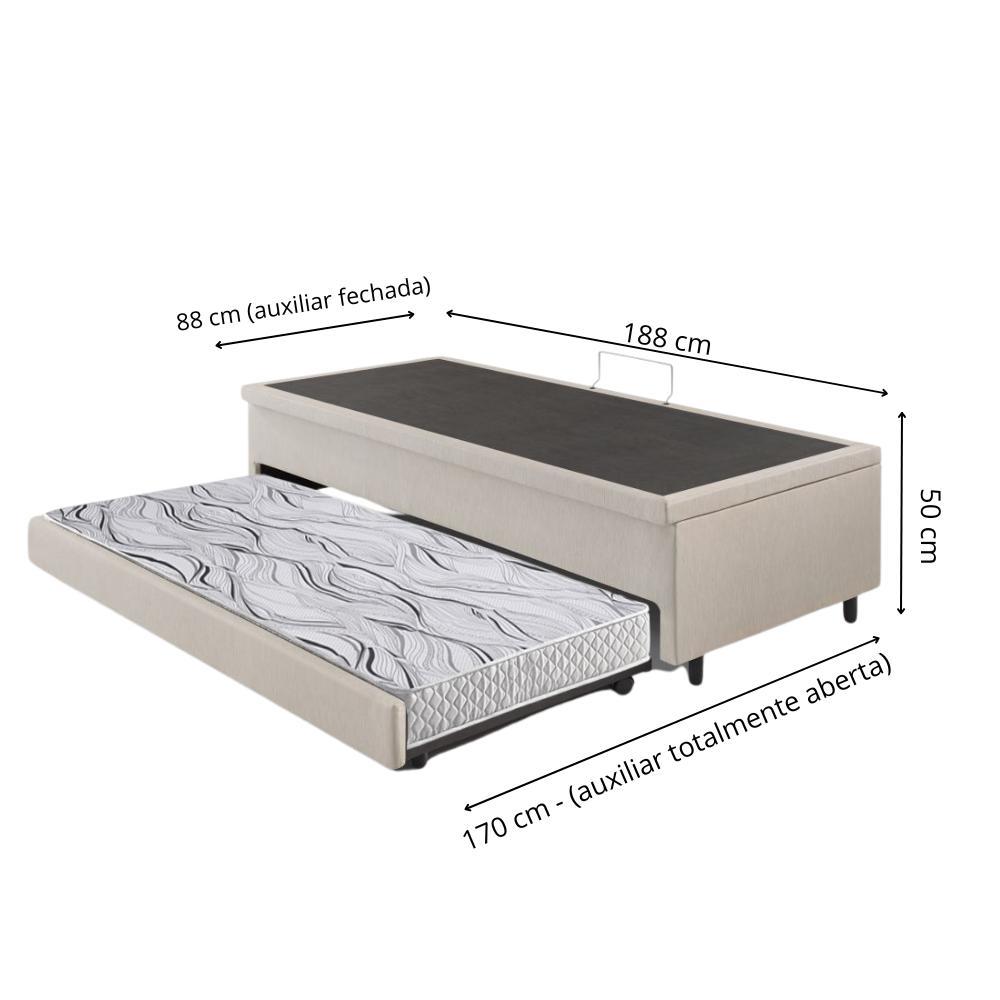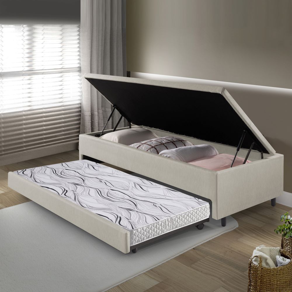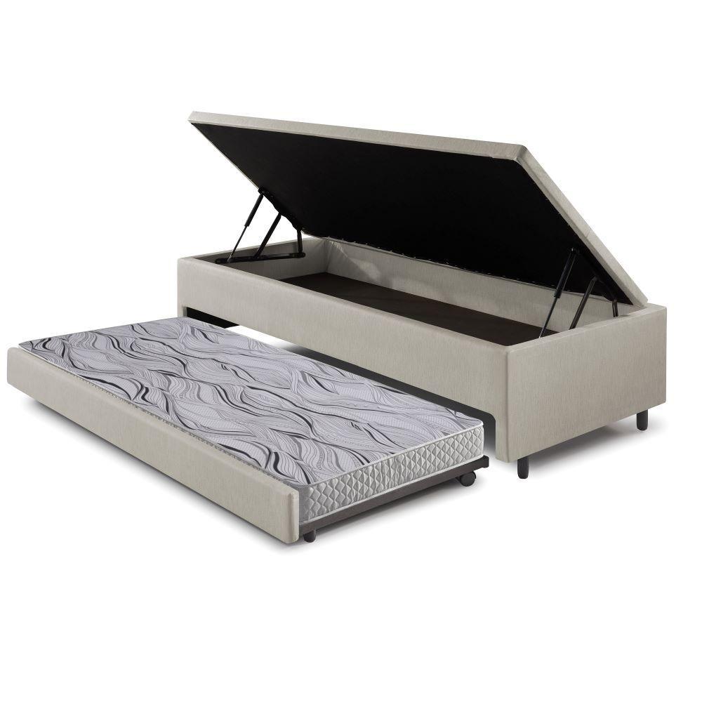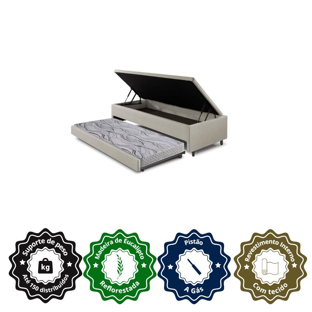 Bicama Box com Baú Solteiro Courino Linho Areia 88x188 com Colchão Auxiliar Ecoflex