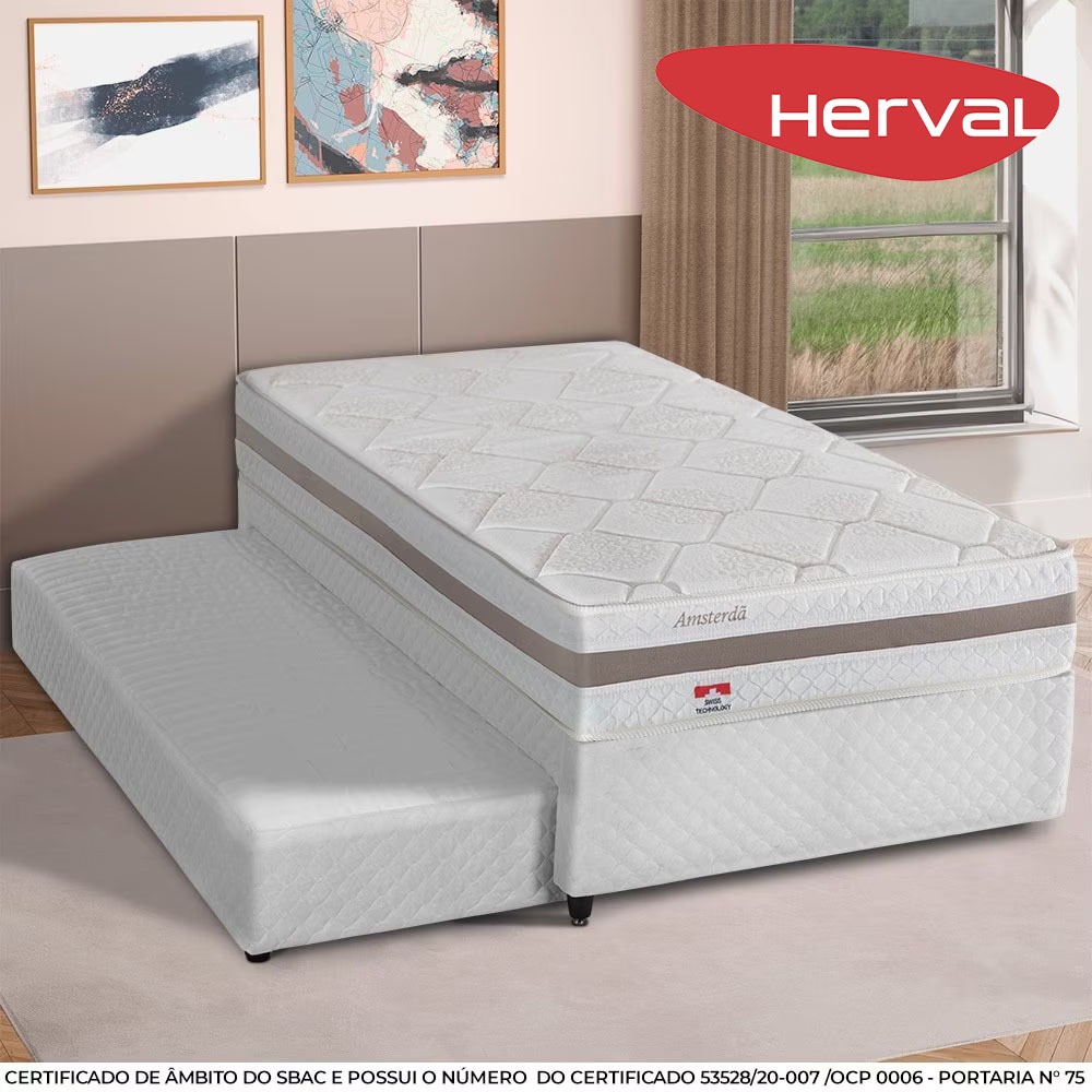 Bicama Solteiro com Cama Auxiliar Herval Amsterdã, Molas Ensacadas, 54x88x188 cm