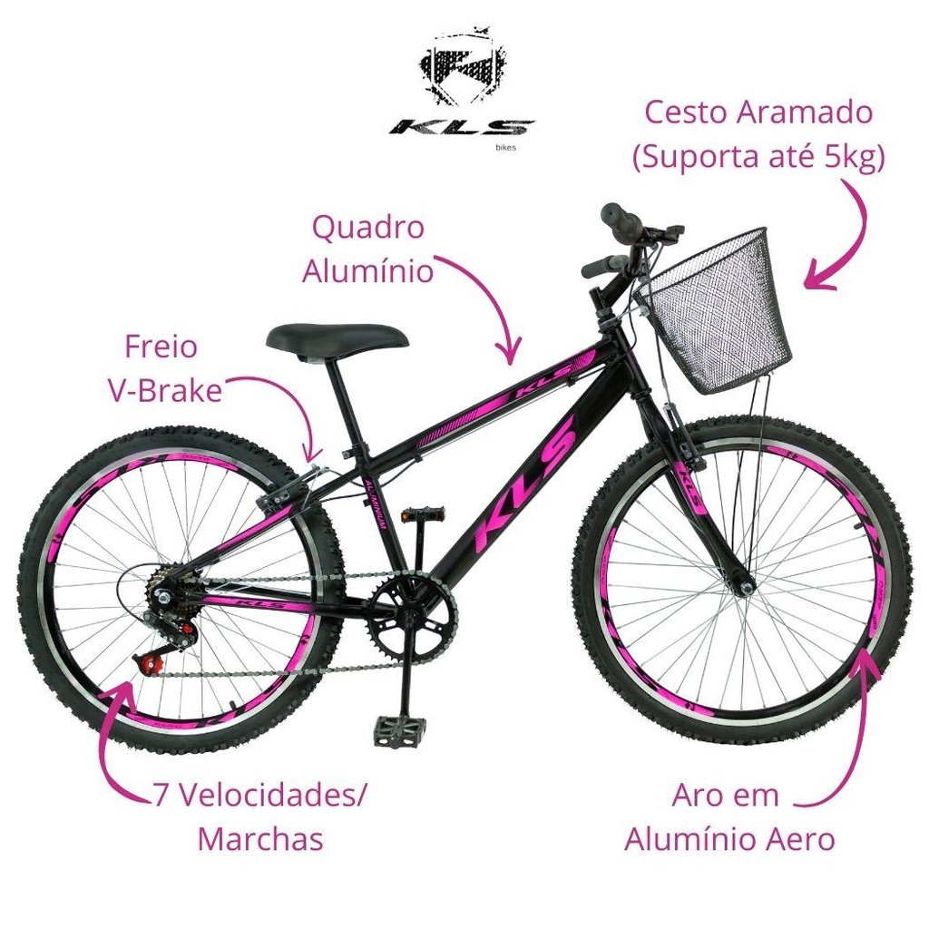 Bicicleta Aro 24 Alumínio Kls Sport Gold V-Brake Mono 7V