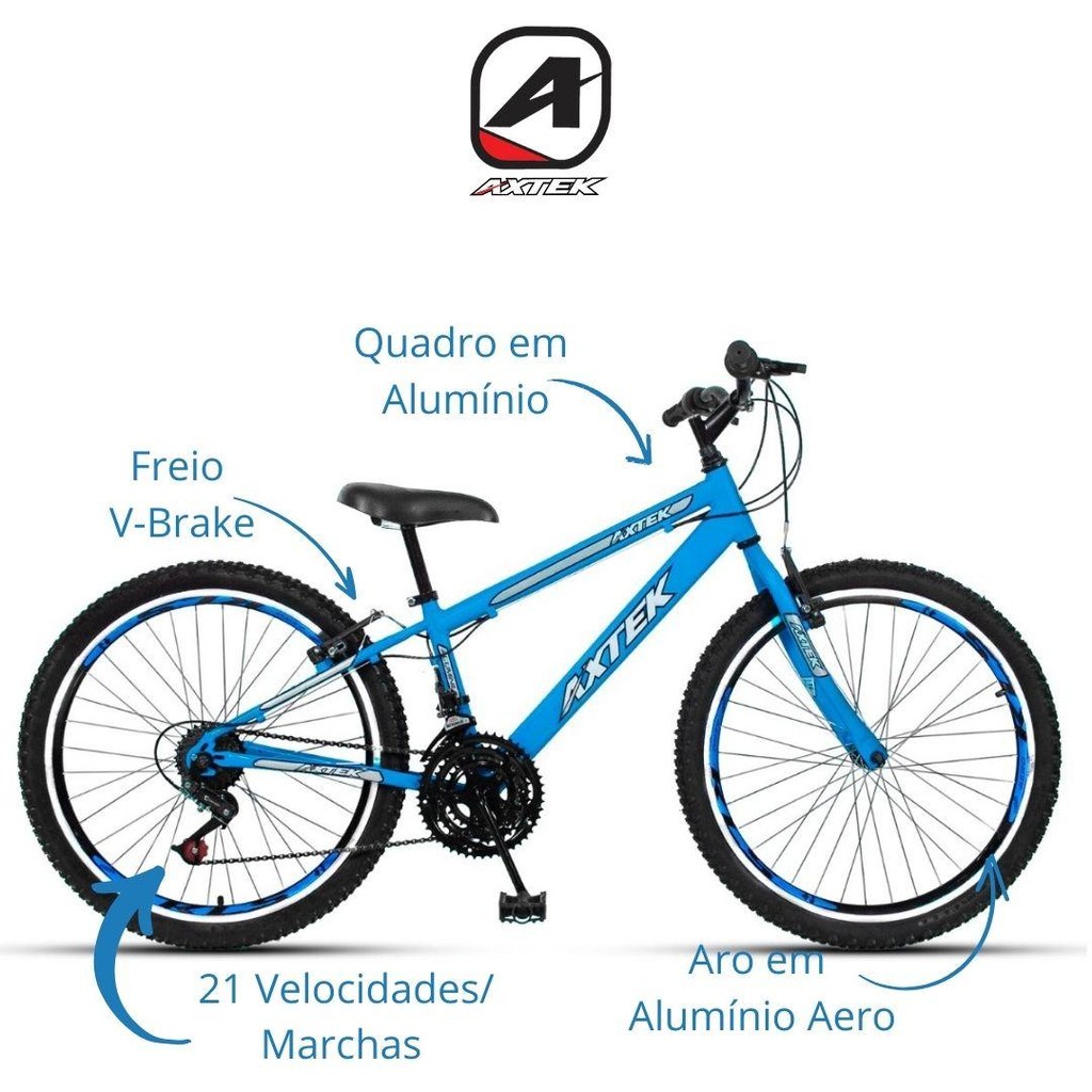 Bicicleta Aro 24 Alum Axtek Sport Gold V-Brake Mtb 21V
